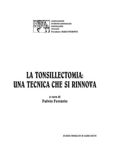 La Tonsillectomia Una Tecnica Che Si Rinnova - AOOI