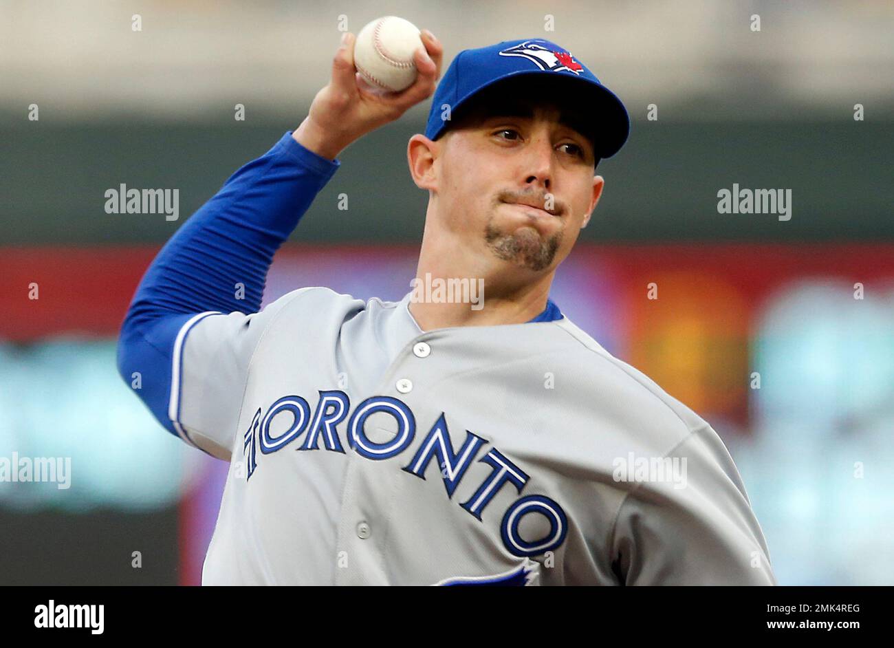 Toronto Blue Jays pitcher Aaron Sanchez throws against the Minnesota Twins in the first inning of a baseball game, Tuesday, April 16, 2019, in Minneapolis. (AP Photo/Jim Mone Stock Photo - Alamy
