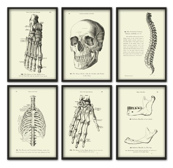Set di stampa di anatomia umana di 6, decorazione artistica da parete dell'ufficio medico, illustrazioni scientifiche vintage, colonna vertebrale delle ossa del cranio - Etsy Italia