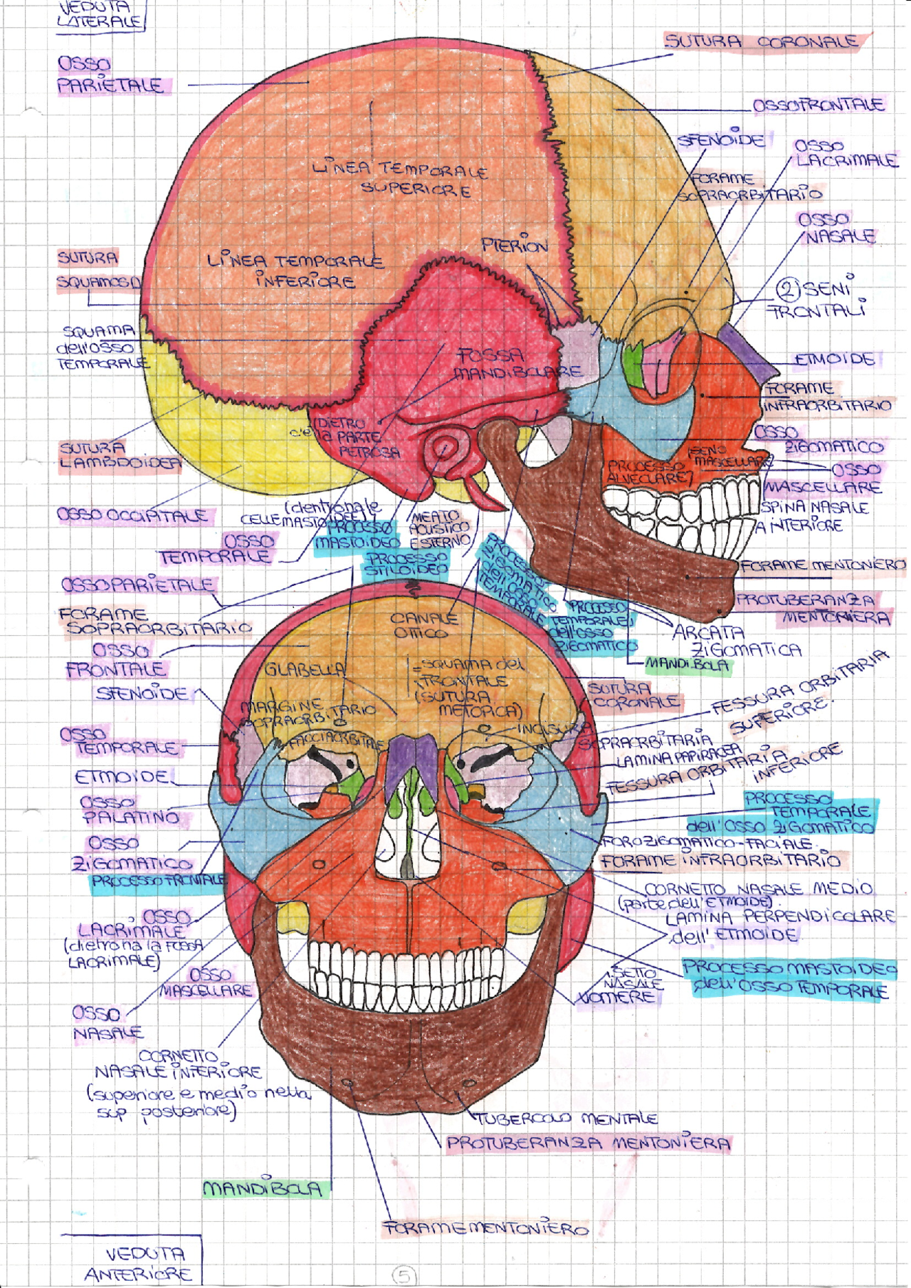 DISEGNI OSSA DEL CRANIO E DELLA FACCIA | Appunti di Anatomia | Docsity