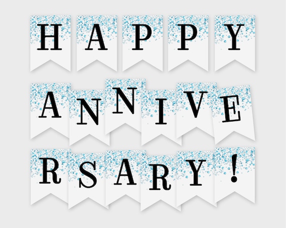 Banner stampabile Happy Anniversary Blue Confetti Glitters - Etsy Italia