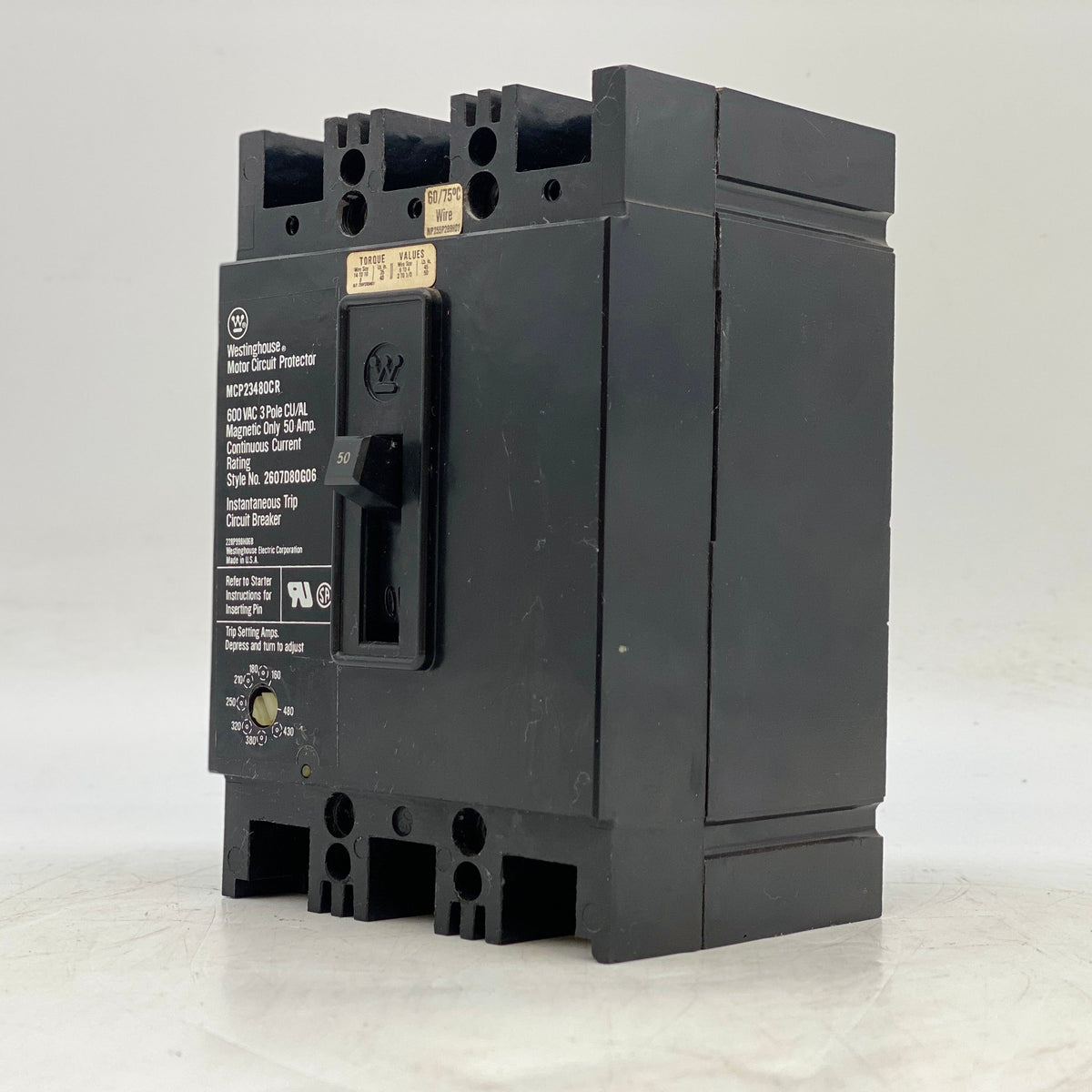 Westinghouse MCP23480CR Circuit Breaker 50A 3-P 600VAC (Used ...