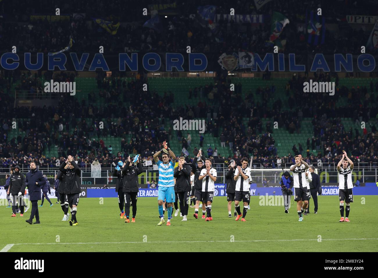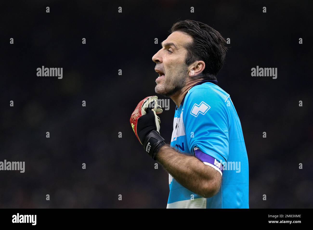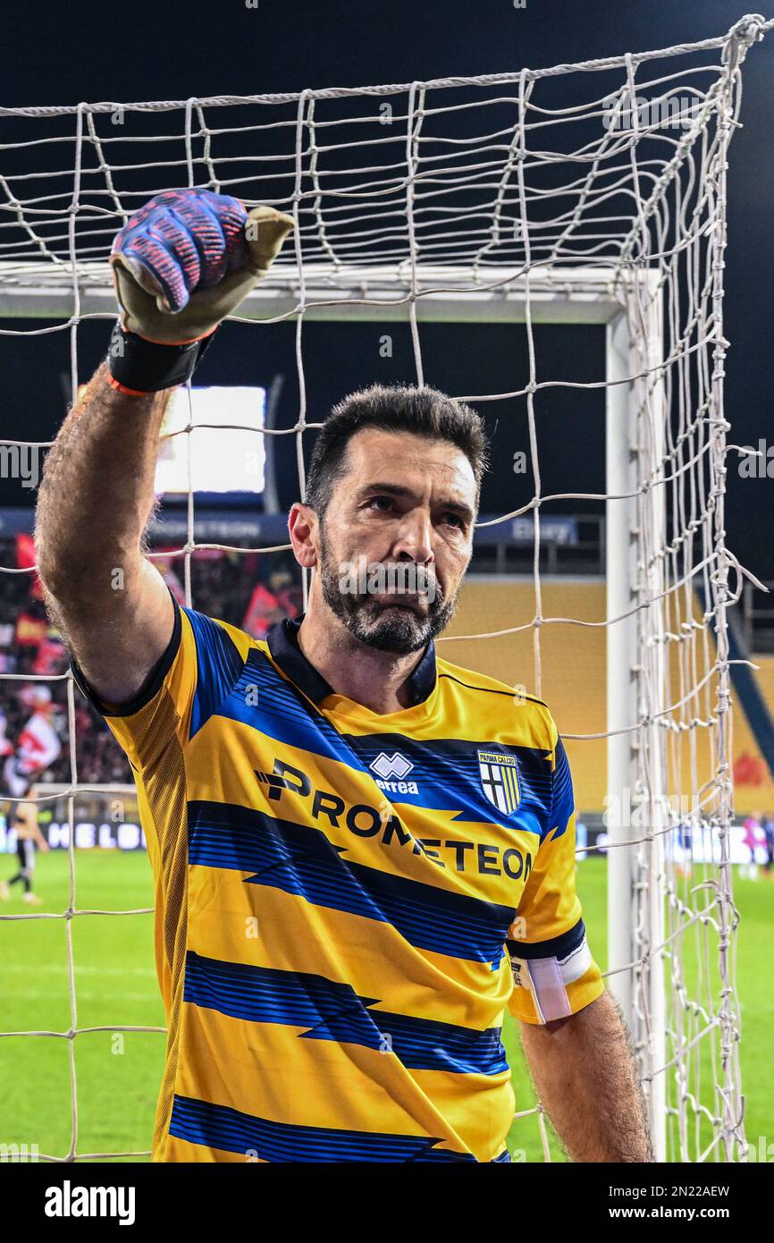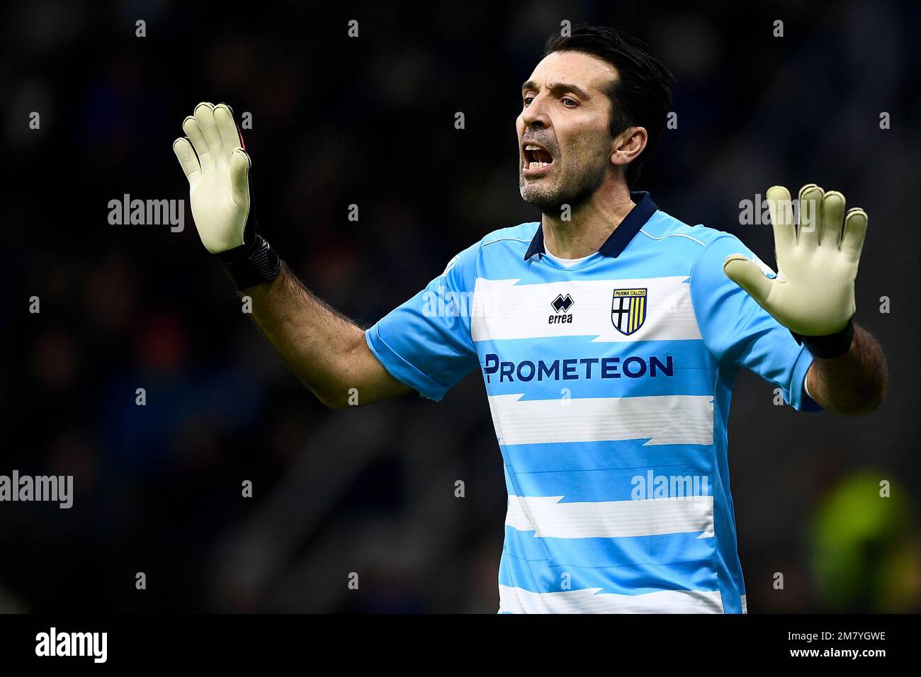 Milan, Italy, 10/01/2023, Gianluigi Buffon of Parma Calcio gestures during Coppa Italia 2022/23 football match between FC Internazionale and Parma Calcio at Giuseppe Meazza Stadium, Milan, Italy on January 10, 2023 Stock Photo - Alamy