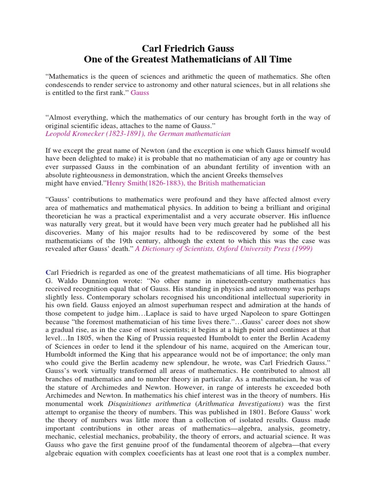 Carl Friedrich Gauss | PDF | Normal Distribution | Number Theory