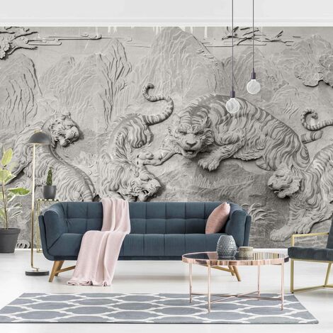 3D realistica tigre muro rotto foto murale carta da parati soggiorno sala da pranzo moderna personalità decorazione carta da parati non tessuta-400 cm X 280 cm : Amazon.it: Fai da te