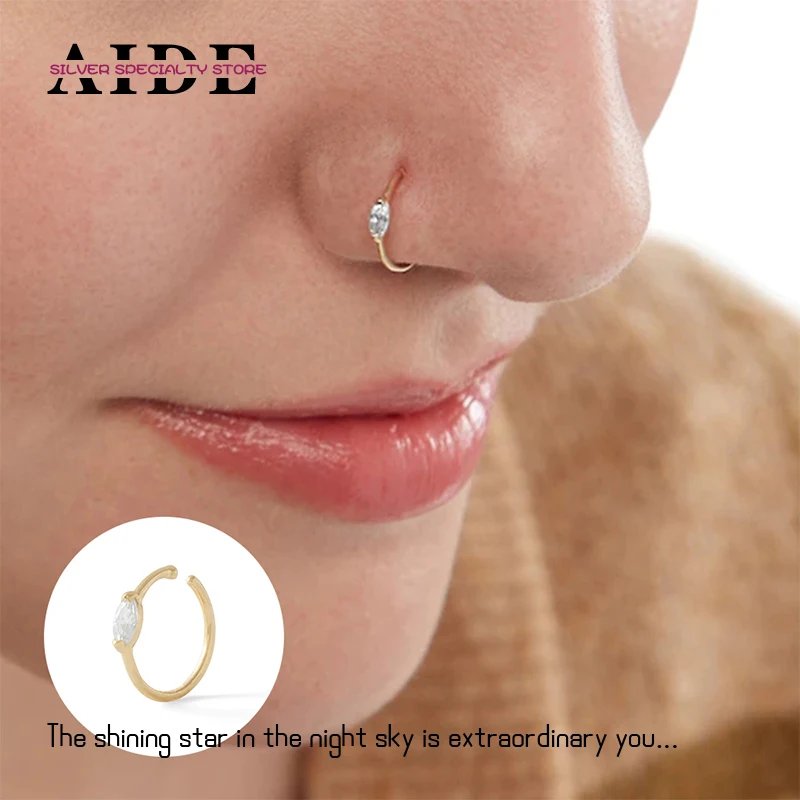 AIDE Diamond Piercing anello al naso 925 Sterling Silver cartilagine Tragus anello orecchino a cerchio per le donne gioielleria raffinata Pendientes regali