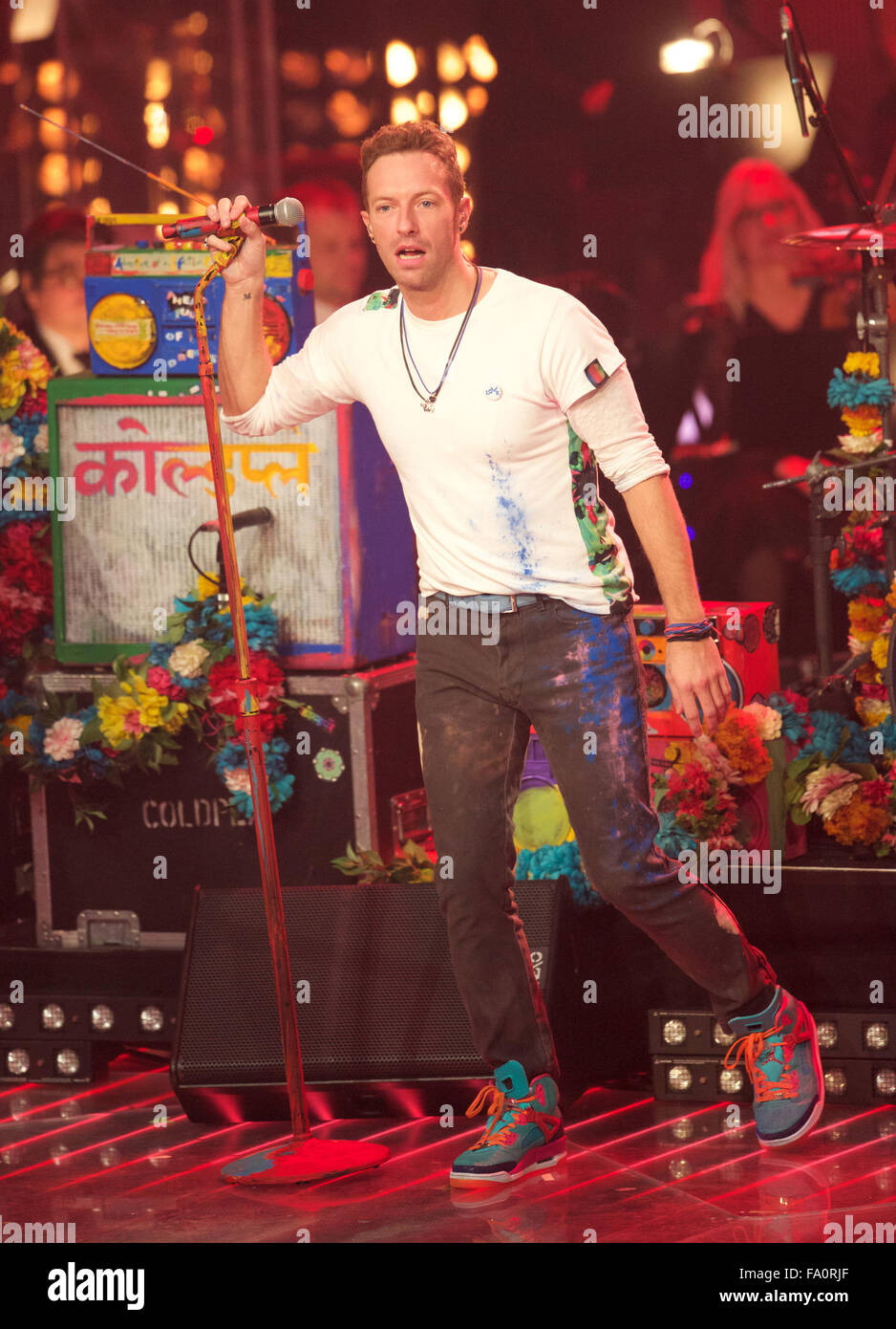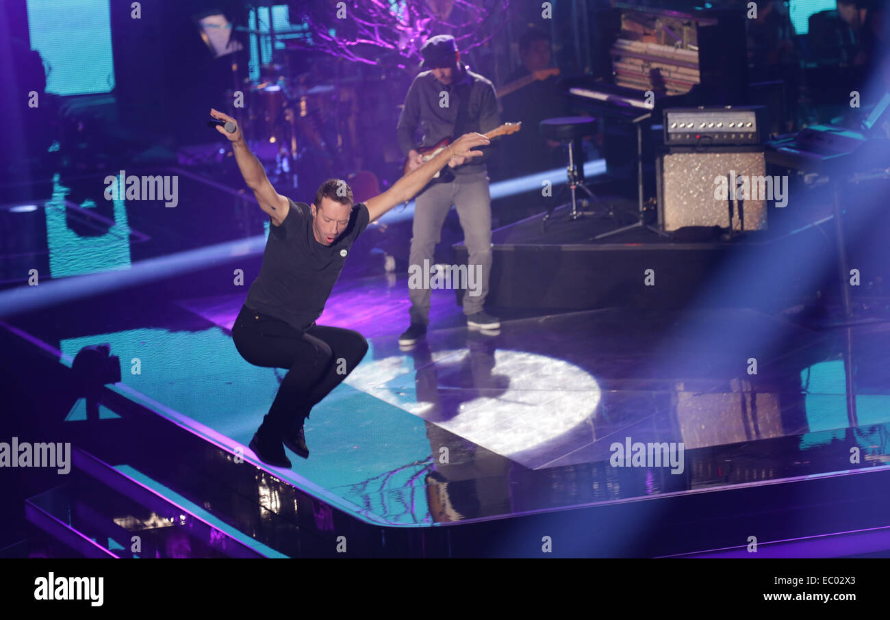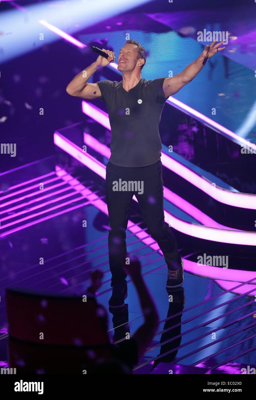 Berlino, Germania. Xvii Dec, 2015. Band britannica Coldplay compresi il cantante Chris Martin esegue sul palco durante la finale dello show televisivo "La Voce della Germania" a Berlino, Germania, 17 dicembre 2015.