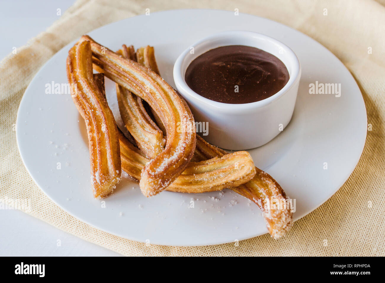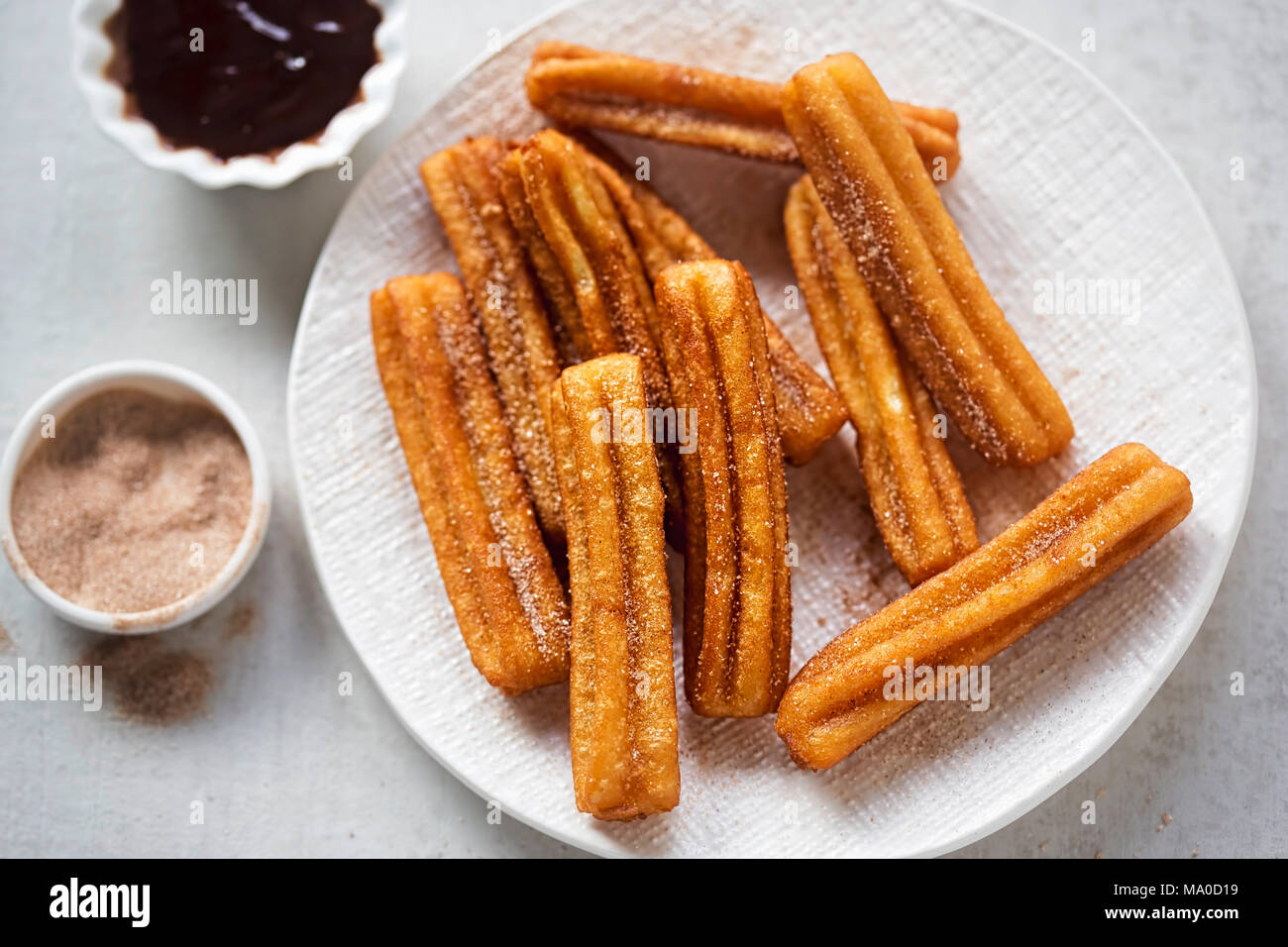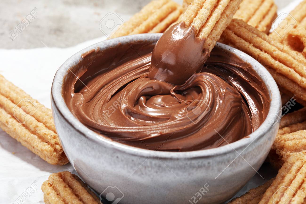 Pasta Di Churros Fritta Con Zucchero E Salsa Di Cioccolato Isolata Su Fondo Bianco. Vista Superiore a Bacchetta Immagine Stock - Immagine di tuffo, cucina: 225443245