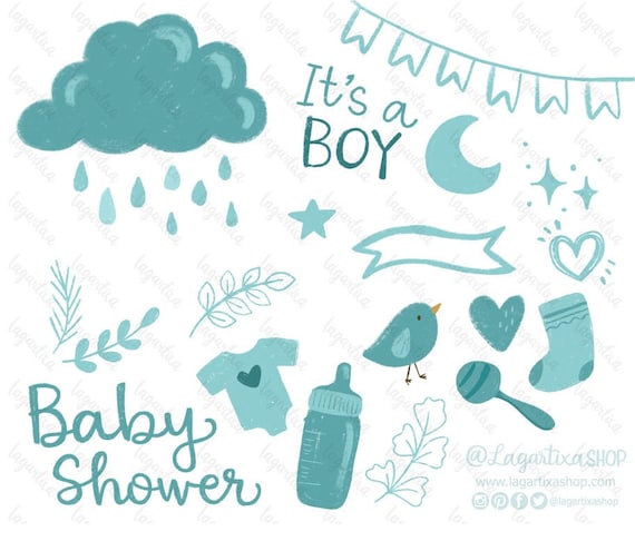 Digital Paper and Baby Shower Clip art Digital Paper and Baby Shower Clip art Stork Stroller Banner Balloons Clothes Baby Movil baby safety pins Brown Teal baby blue / Papel Digital Fondos