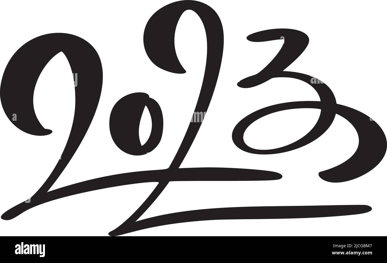 Feliz Año Nuevo 2023 diseño de texto vectorial. Portada del diario de negocios para la plantilla de diseño de 2023, ilustración de banner de tarjeta aislada sobre fondo blanco Imagen Vector de