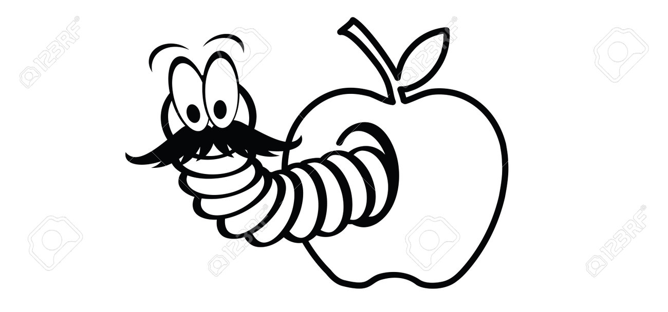 Verme In Mela Carino Divertente Cartone Animato In Bianco E Nero Illustrazione Vettoriale Per Colorare Larte - Immagini vettoriali stock e altre immagini di Colorare - iStock