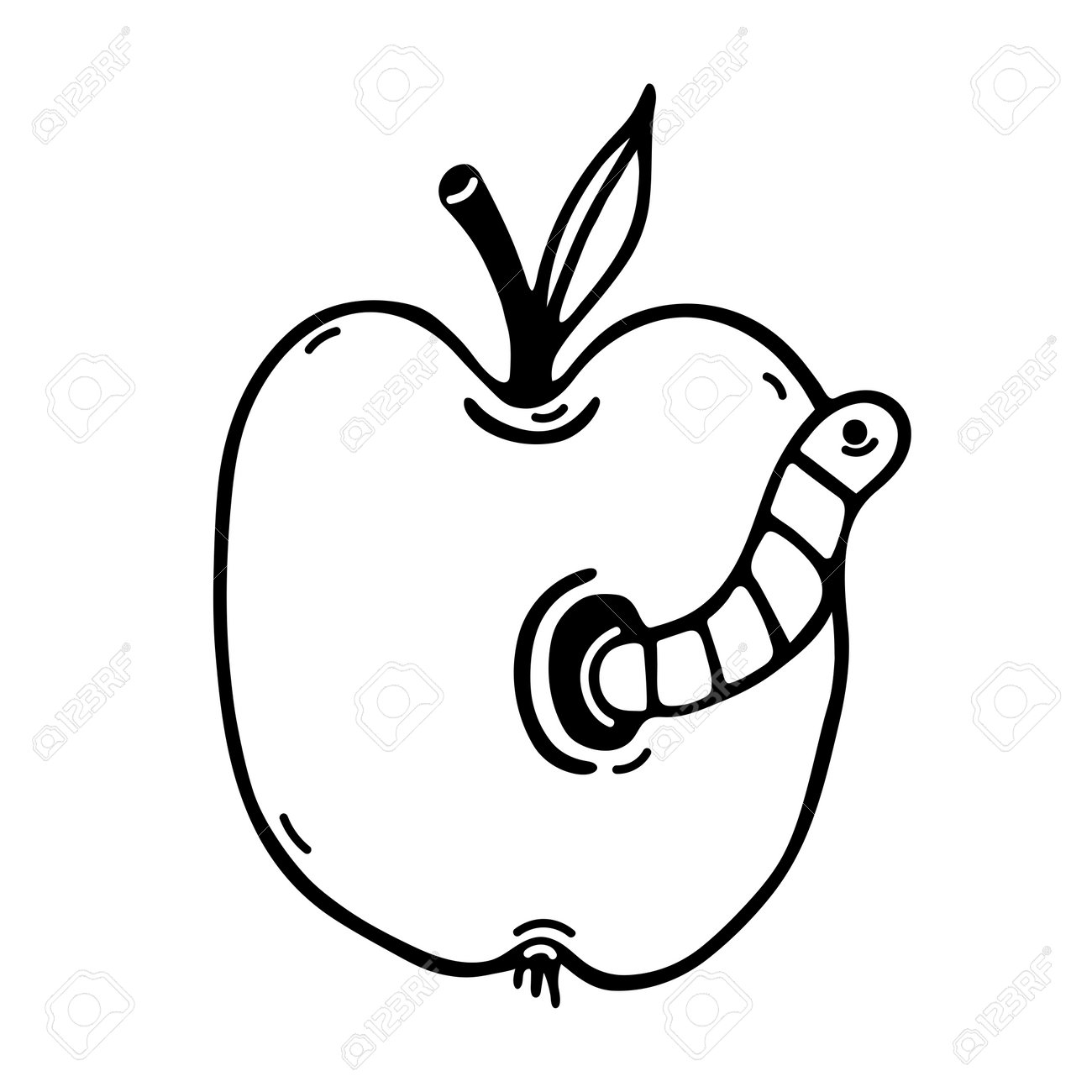 SVG, Vettoriale - Verme In Icona Di Vettore Di Mela Fresca Divertente Bruco Mangia Un Frutto Dolce Doodle Disegnato A Mano Isolato Su Sfondo Bianco Giardino Insetto Parassita Semplice Cartone Animato Clipart