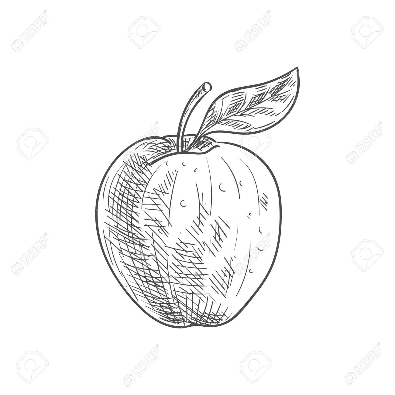 SVG, Vettoriale - Schizzo Isolato Di Vettore Di Frutta Mela. Mela Naturale Biologica Con Foglia. Image 144838040
