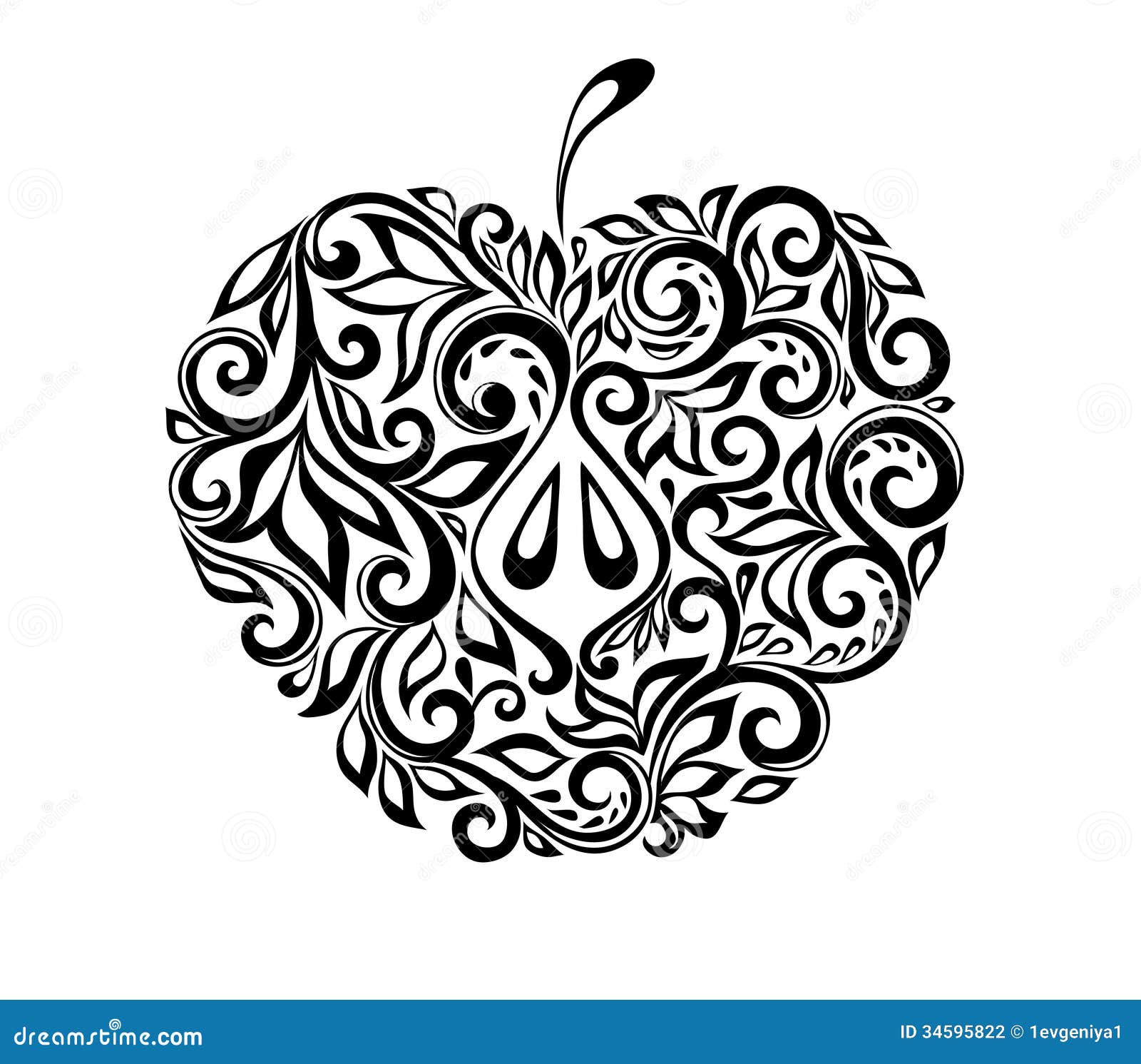 Bella Mela in Bianco E Nero Decorata Con Il Flo Illustrazione Vettoriale - Illustrazione di filiali, frutta: 34595822
