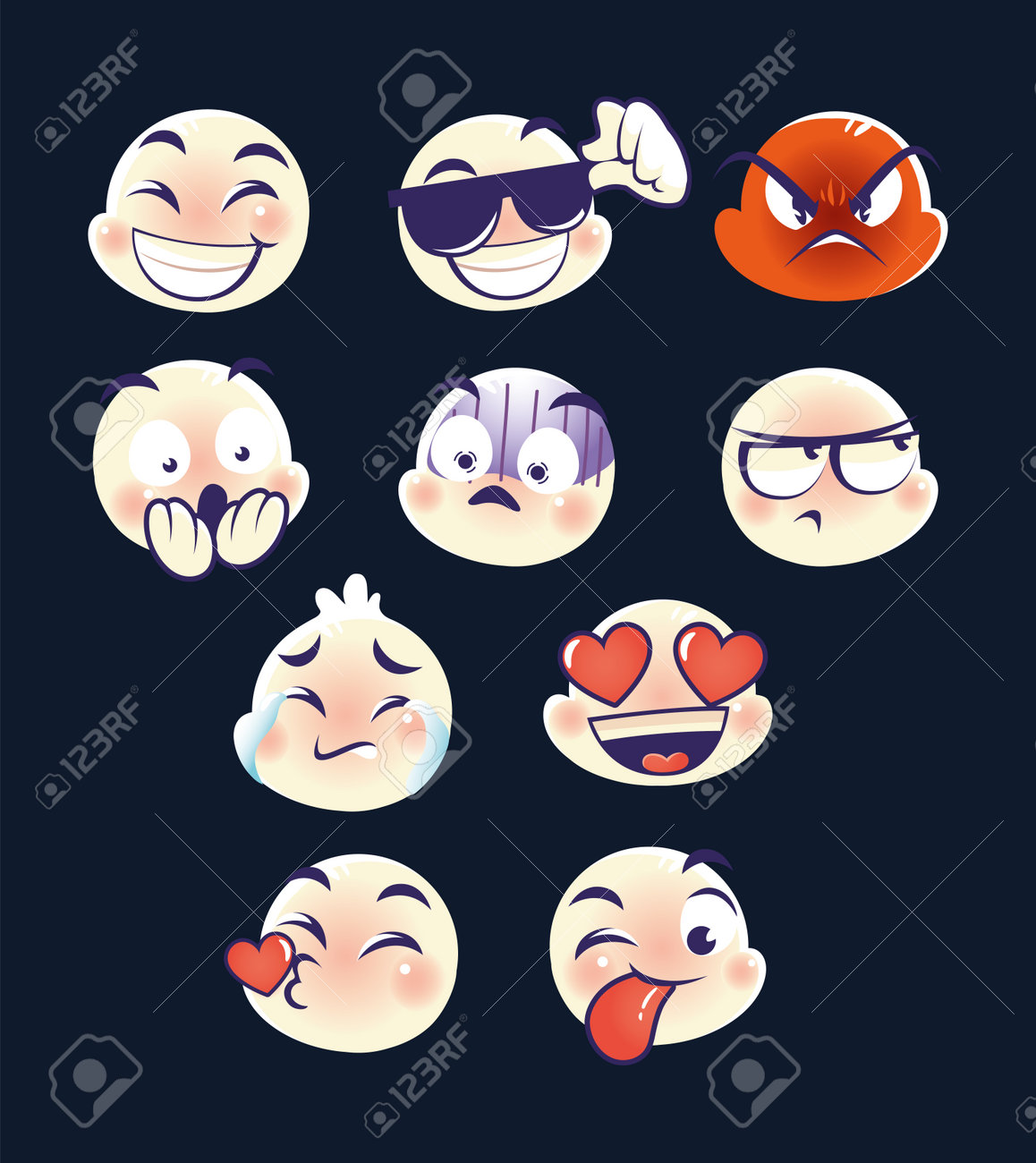 SVG, Vettoriale - Emoticon Di Bolle Di Cartone Animato 3d Di Alta Qualità Rotonde Blu Rosse Vettoriali Per Reazioni Ai Commenti Sui Social Media, Modello Di Icona Come Messaggio Di Carattere Emoji
