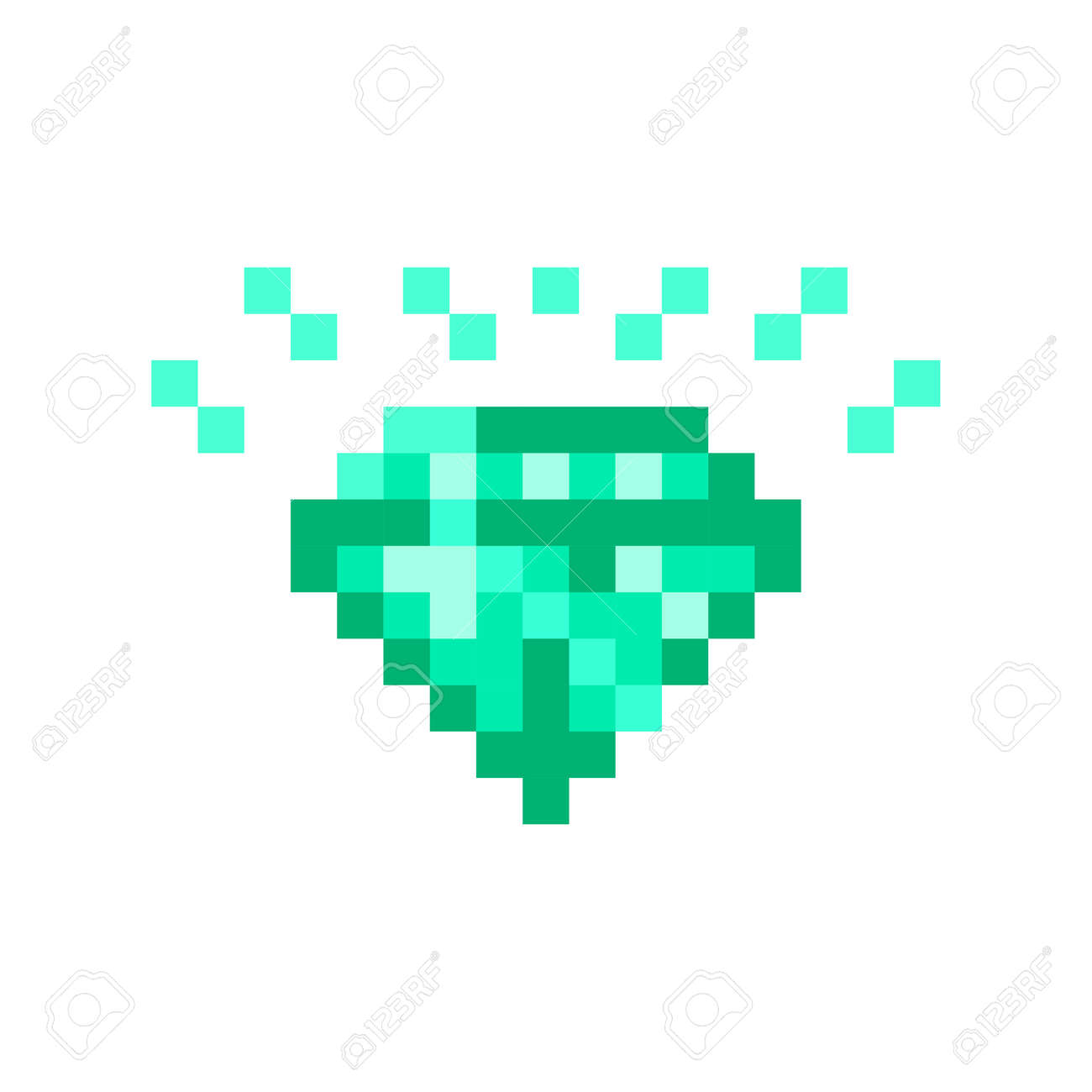 Vettoriale Stock Gemstone pixel art icons set. Diamond, sapphire, topaz, ruby and emerald gemstone. Precious stone solated vector illustration. Game assets 8-bit sprite. Design stickers, logo for jewelry store, app. | Adobe