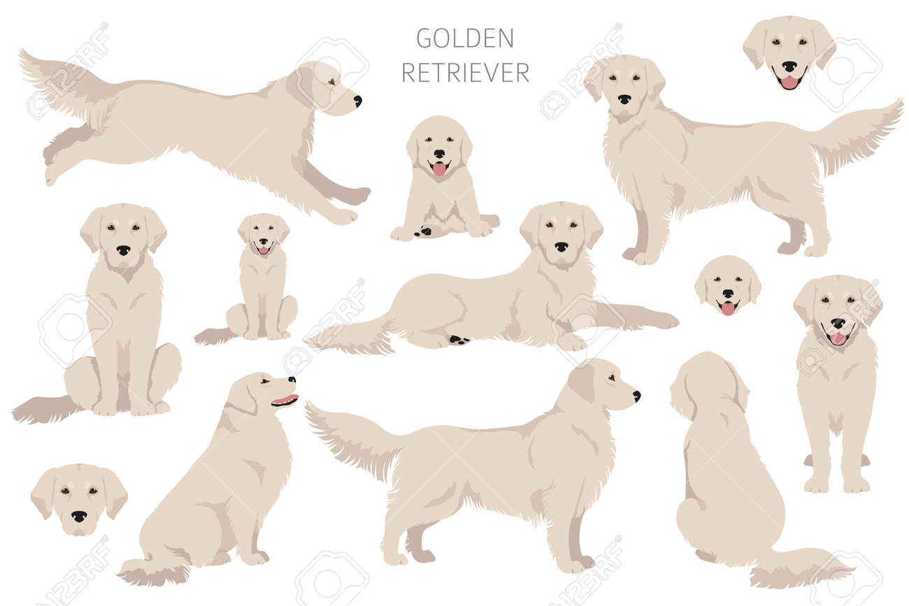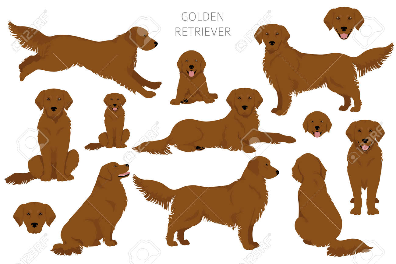 SVG, Vettoriale - Golden Retriever Cani In Diverse Pose E Colori Del Mantello Clipart. Illustrazione Vettoriale. Image 173323348
