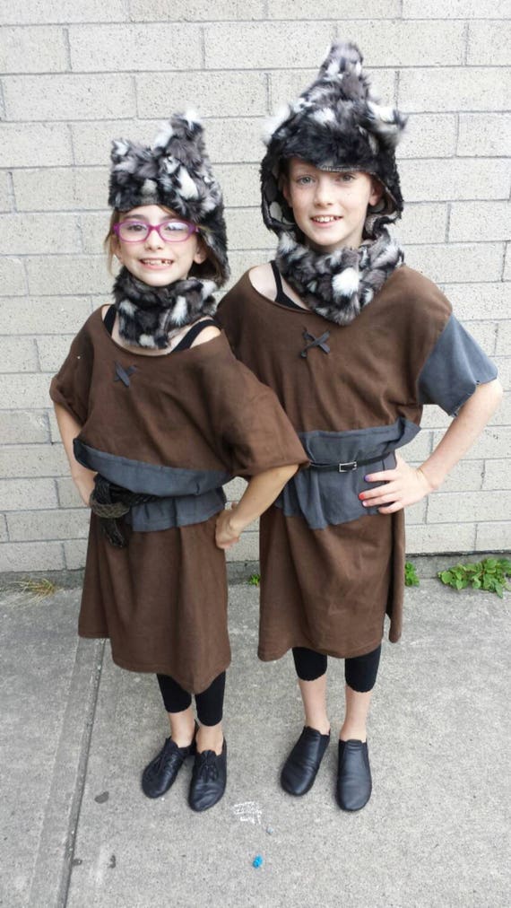 Upcycled Peter Pan Costume, Lost Boys Racoon fun Fur Hood, Grey and Brown Tunic, Belt and Tail Adult Size - Etsy Israel