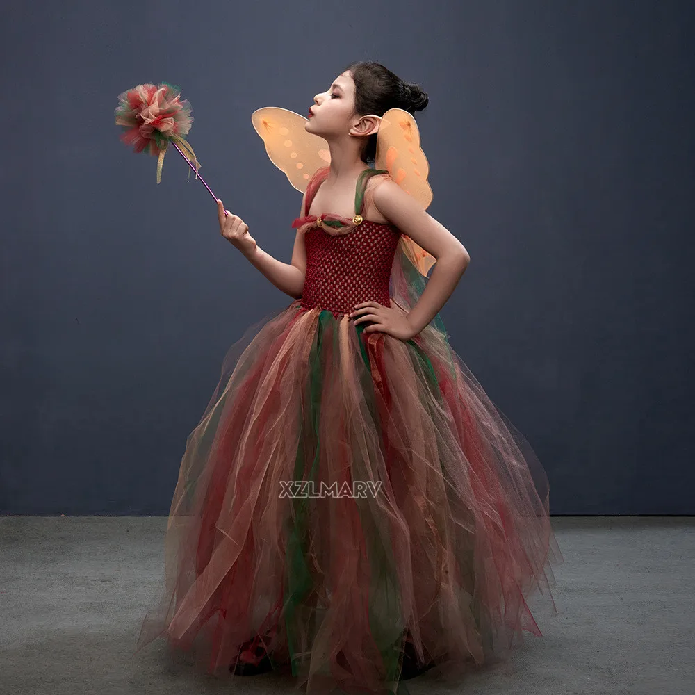 Costume da principessa fata del bosco per ragazze vestito Tutu fantasia con ali set autunno bambini festa di compleanno Halloween Cosplay Ball Gown - AliExpress