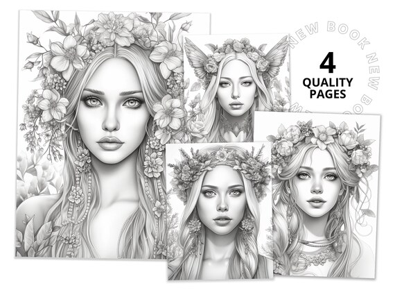 Libro da colorare della principessa dei fiori Pagina da colorare stampabile per libro da colorare per adulti Download digitale pagina da colorare in scala di grigi - Etsy Italia