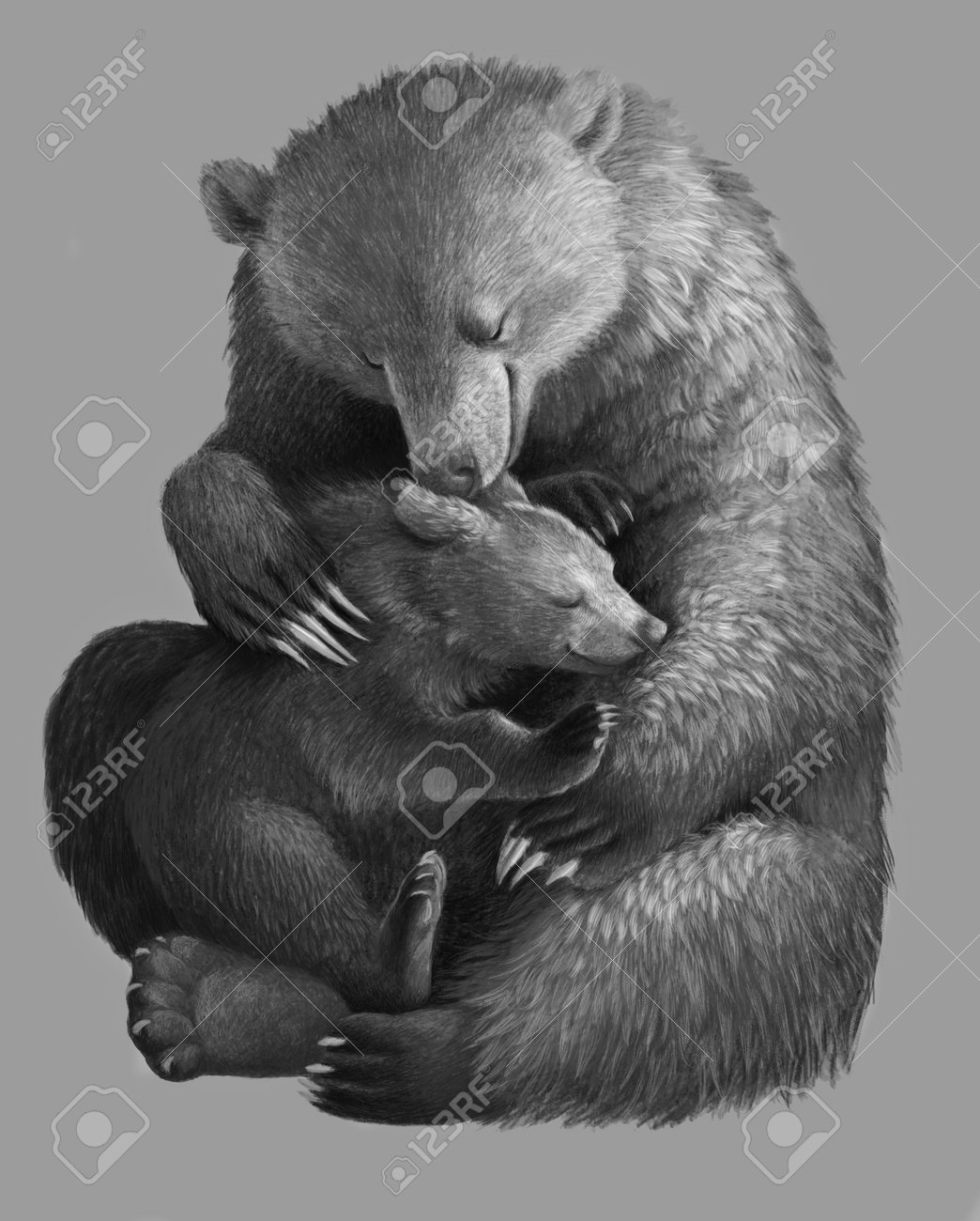 Immagini Stock - La Mamma Orso Abbraccia Il Cucciolo Di Orso. Disegno A Mano Monocromatico Realistico. Illustrazione, Maternità. Festa Della Mamma.. Image 161674303
