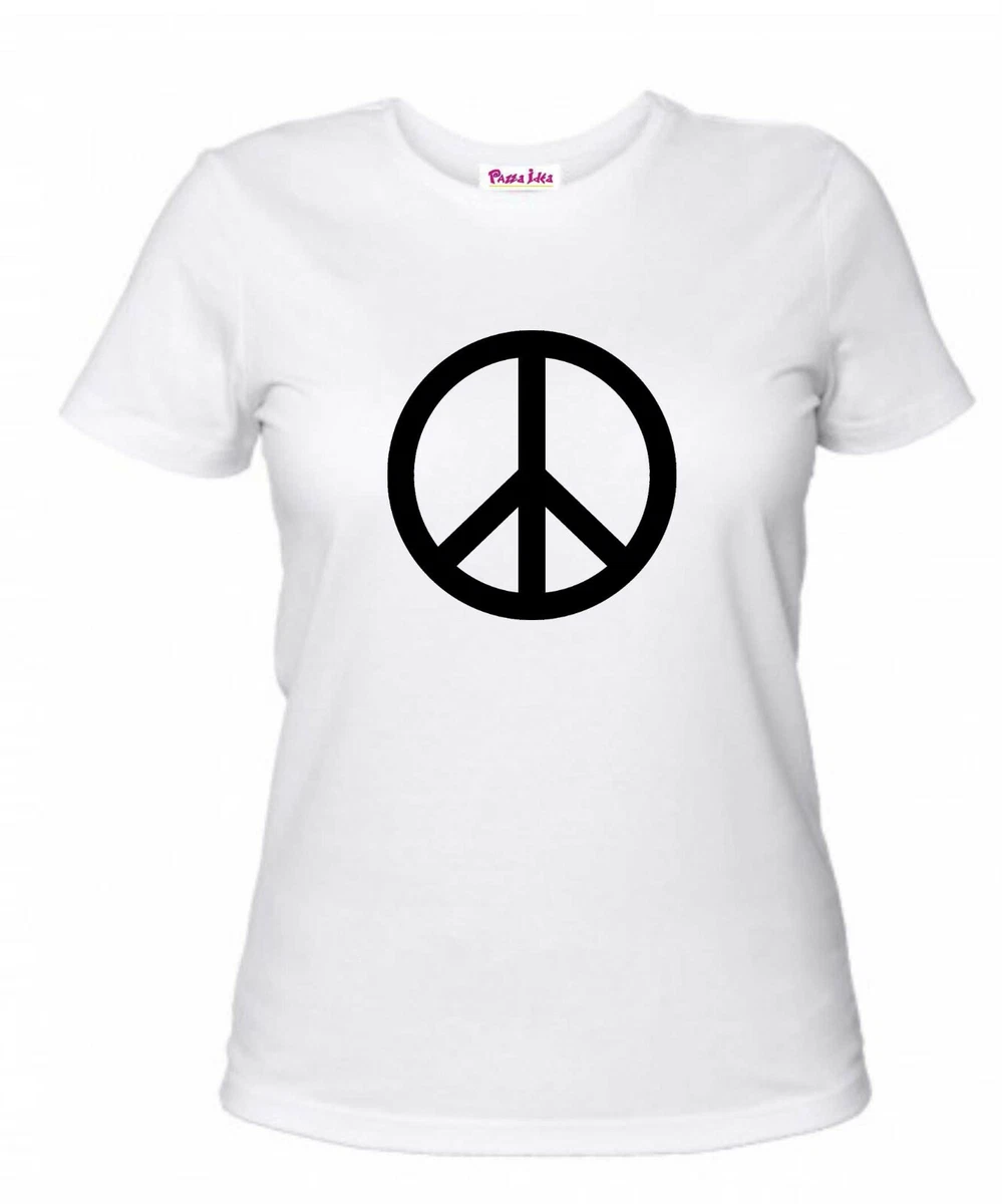 T-shirt cotone donna bianca disegno pace simbolo di pace | eBay