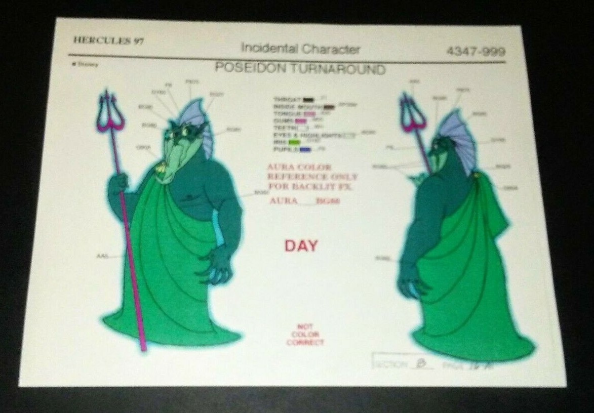 Disney HERCULES TV Series Studio COPY Production POSEIDON Color Guide Page #KT | eBay