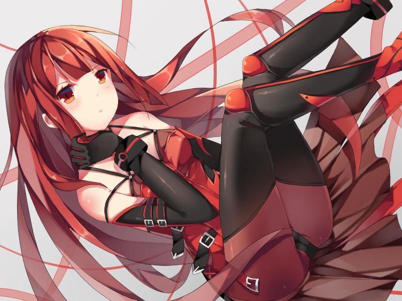 Blood choker clouds elbow gloves elesis (elsword) elsword gloves ha-gha long hair red eyes red hair signed sky sunset sword thighhighs weapon | konachan.net - Konachan.com Anime Wallpapers
