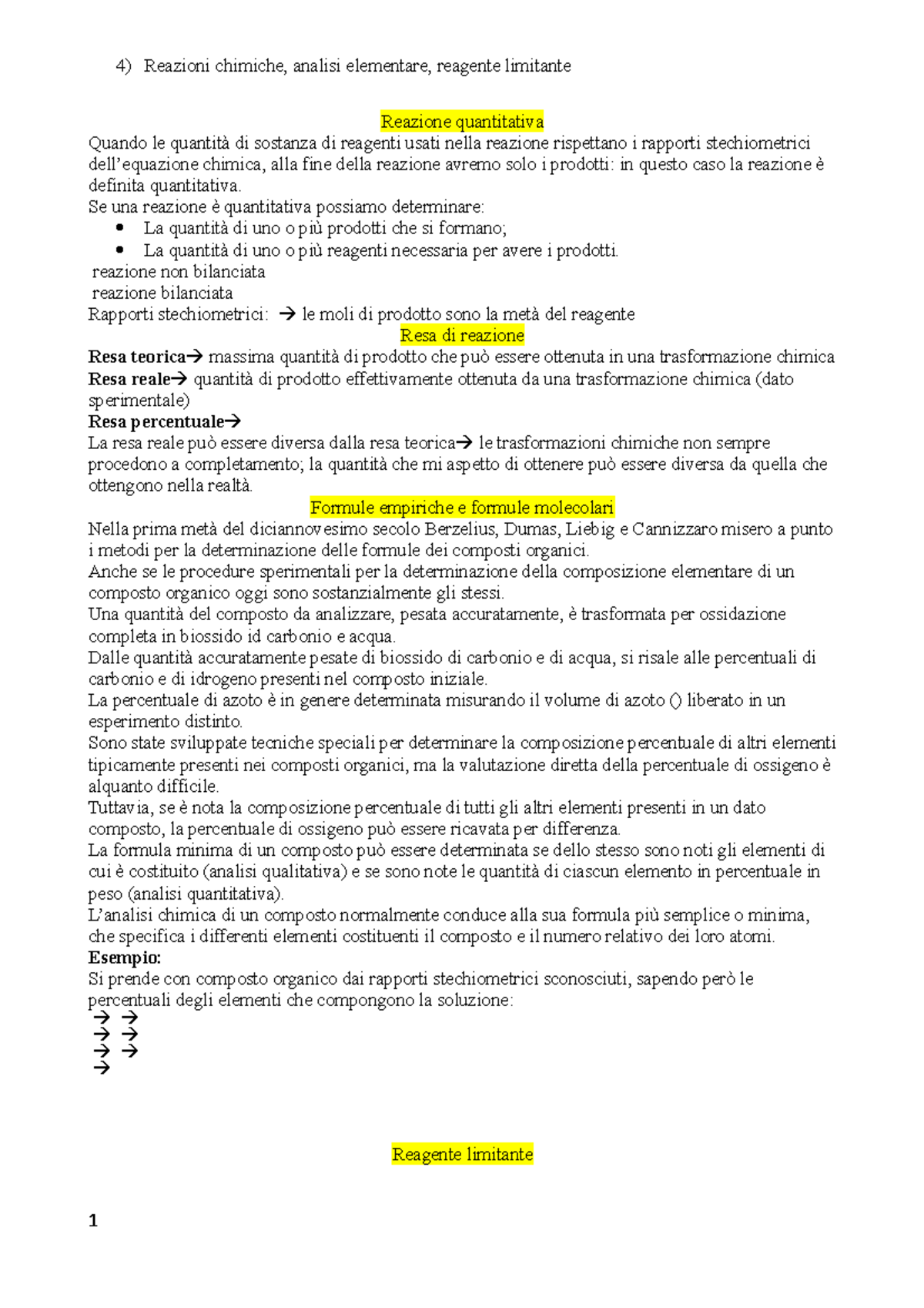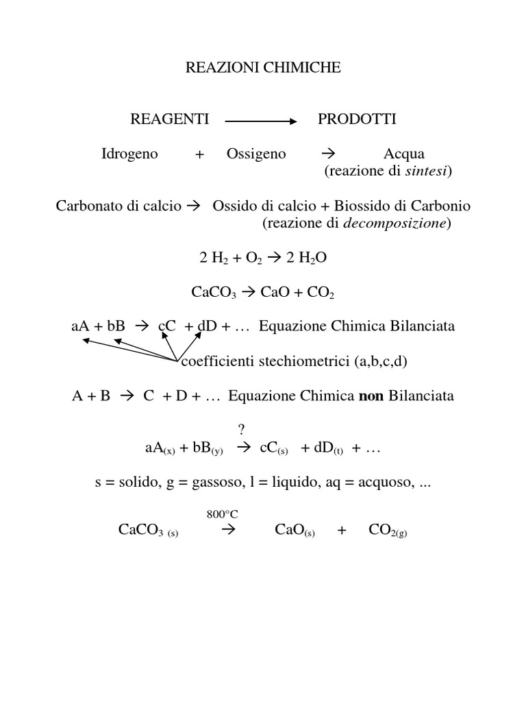 Chimica generale-Reazioni chimiche, analisi elementare, reagente limitante - Reazioni chimiche, - Studocu
