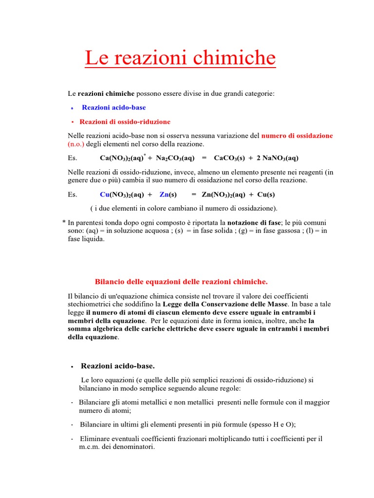 Le reazioni chimiche - Dispense