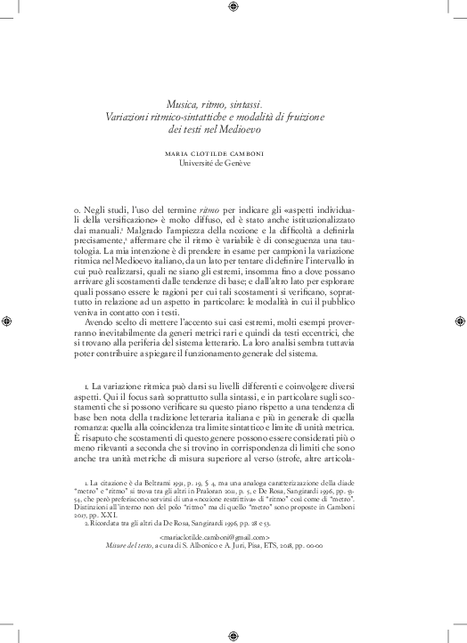 PDF) Musica, ritmo, sintassi. Variazioni sintattico-ritmiche e modalità di fruizione dei testi nel Medioevo [bozze non corrette] | Maria Clotilde Camboni - Academia.edu
