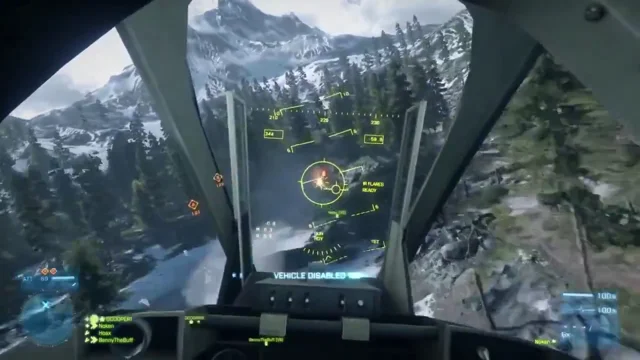 In Battlefield 3, Going Hunting Jet Mission, As the pilot is pulling left, the player vision is greyed out at the edges of the screen as he's experiencing a high-g maneuver. A