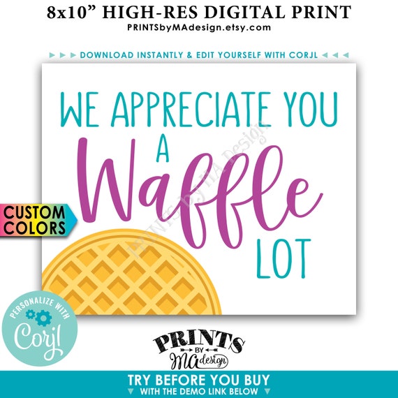 We Appreciat You a Waffle Lot Waffle Sign, Waffle Station, Waffle Bar, PRINTABLE 8x10 Sign Modifica tu stesso i colori con Corjl - Etsy Italia