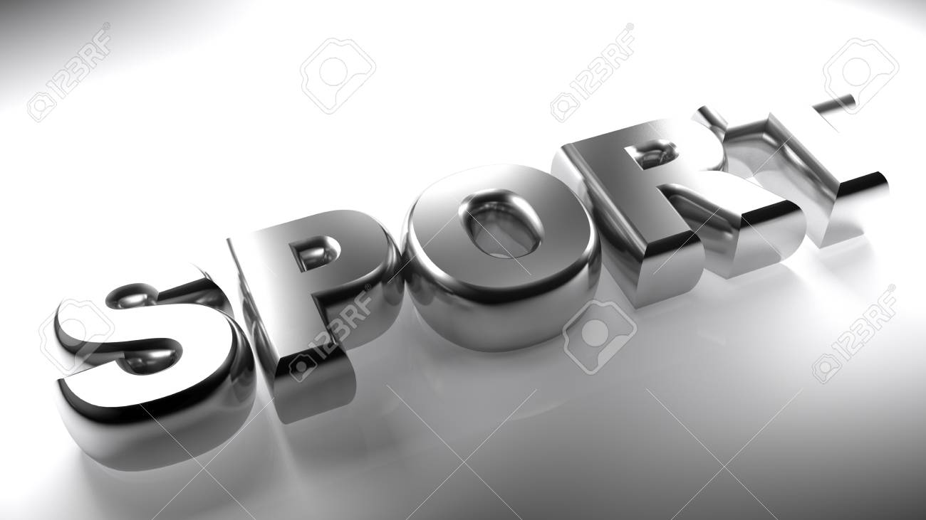 The Writing SPORT Is In 3D Metallic Chromed Letters And Is Laying On A White Surface - 3D Rendering Stock Photo, Picture and Royalty Free Image. Image 86196995.