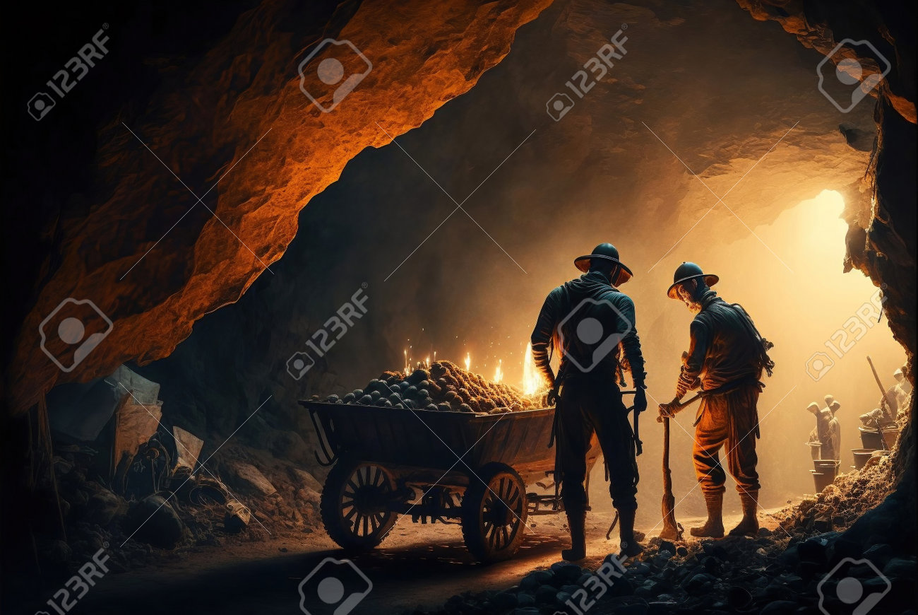 Immagini Stock - Estrazione Del Carbone In Una Miniera Di Carbone. Minatore Con Un Carro. Ai Generativo. Image 202147688