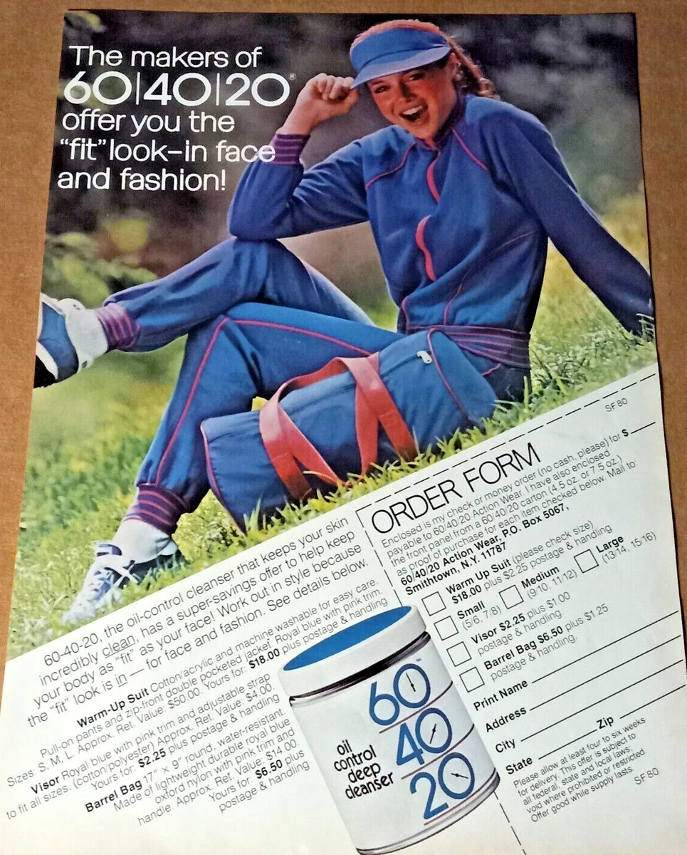 1980 print ad page -JAYNE MODEAN model 60/40/20 fashion workout wear Advertising | eBay