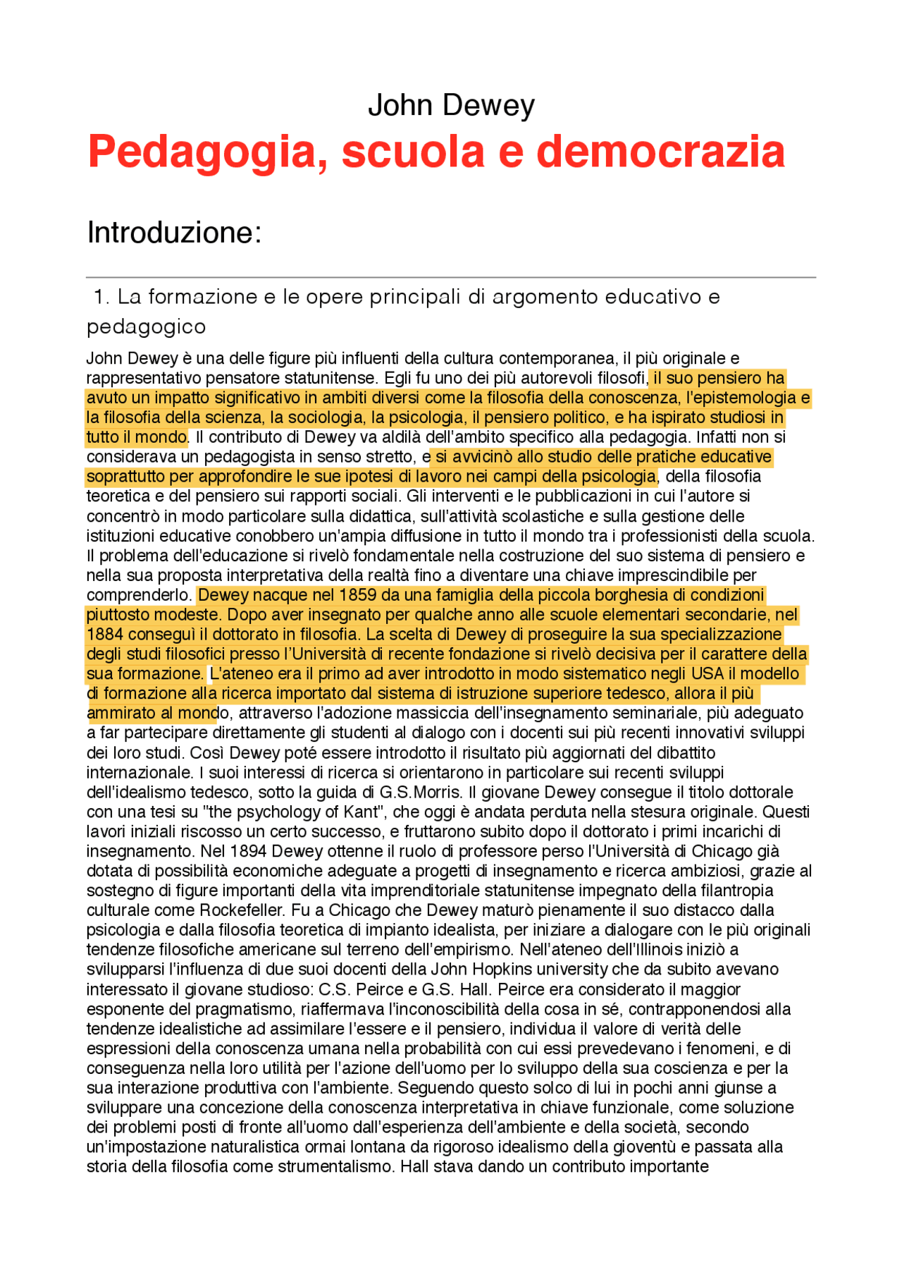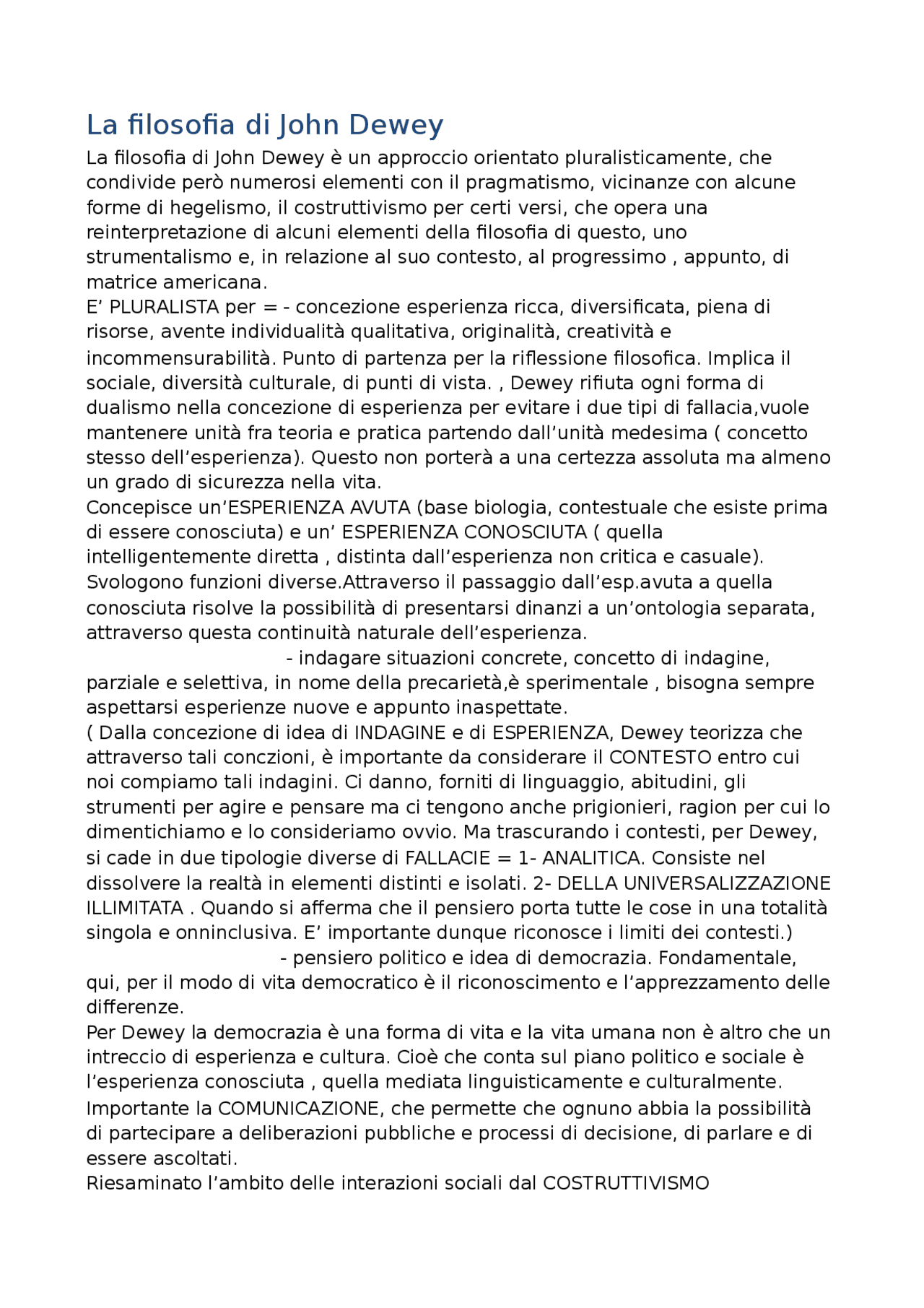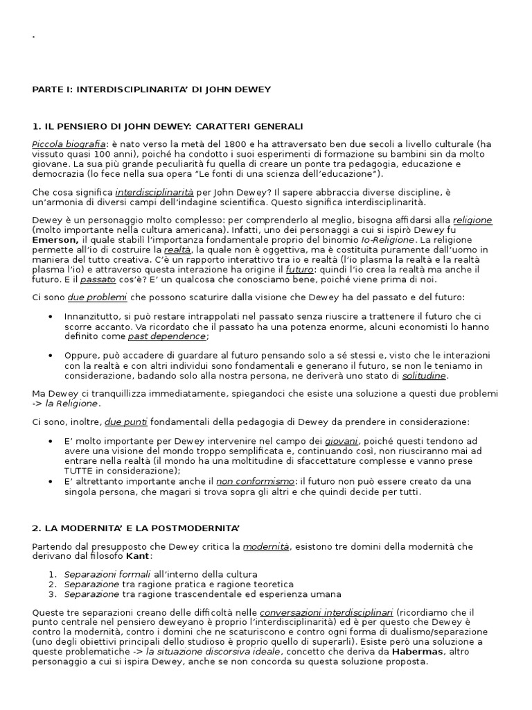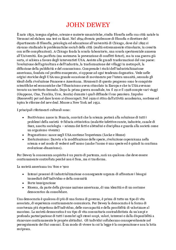 Il Pensiero Di John Dewey | PDF