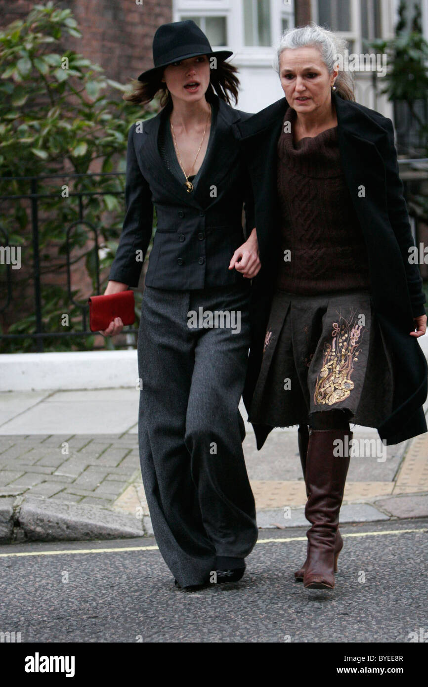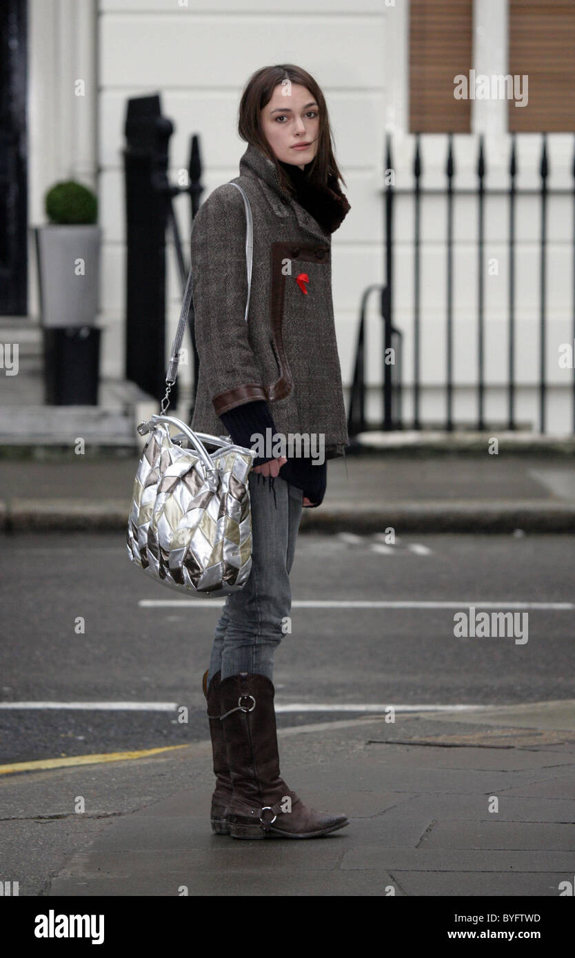 Keira Knightley lascia il suo appartamento, passeggiate al piano di sotto per i fotografi in attesa guardando molto infelice circa qualcosa. Ella Foto stock - Alamy