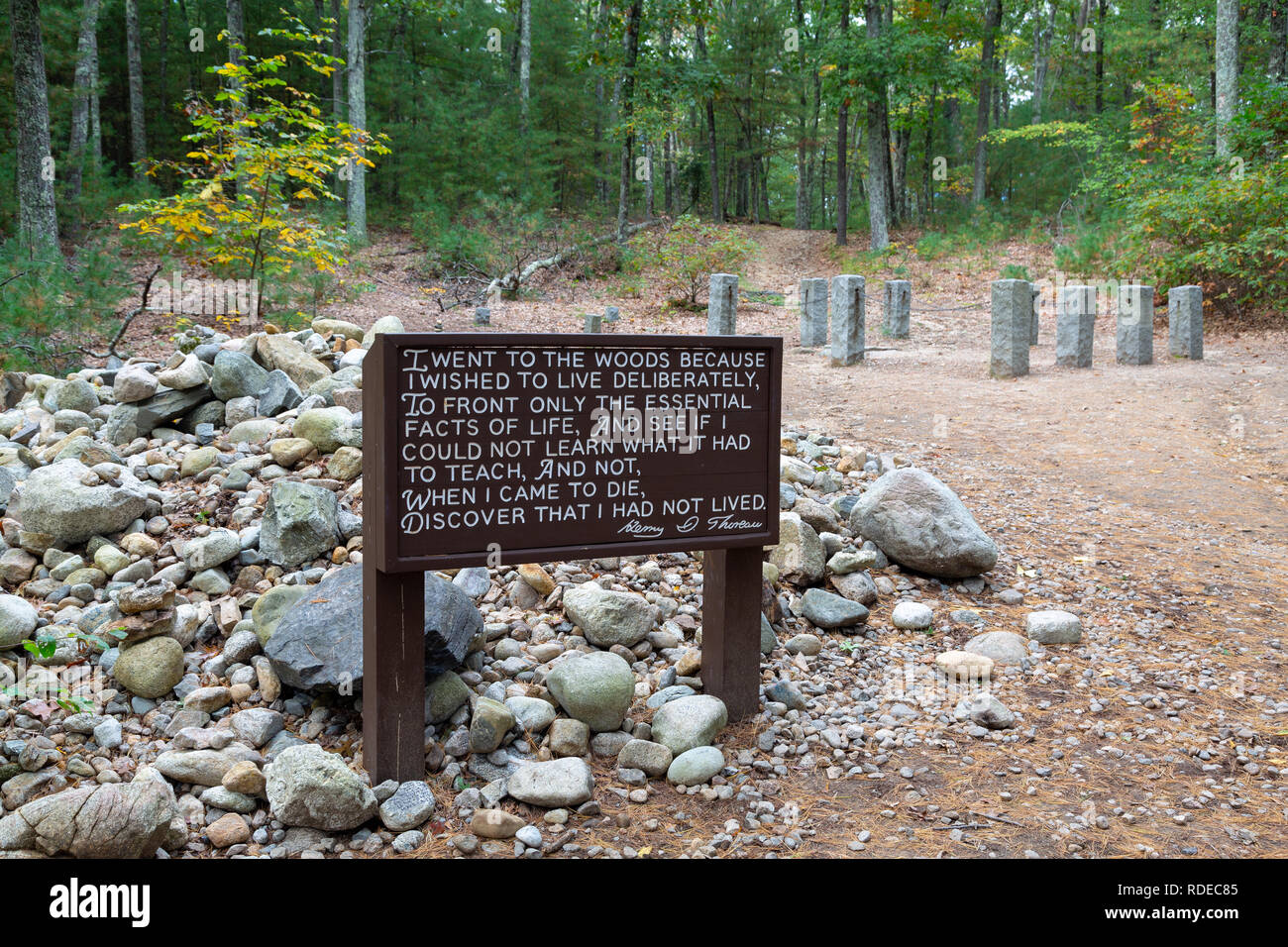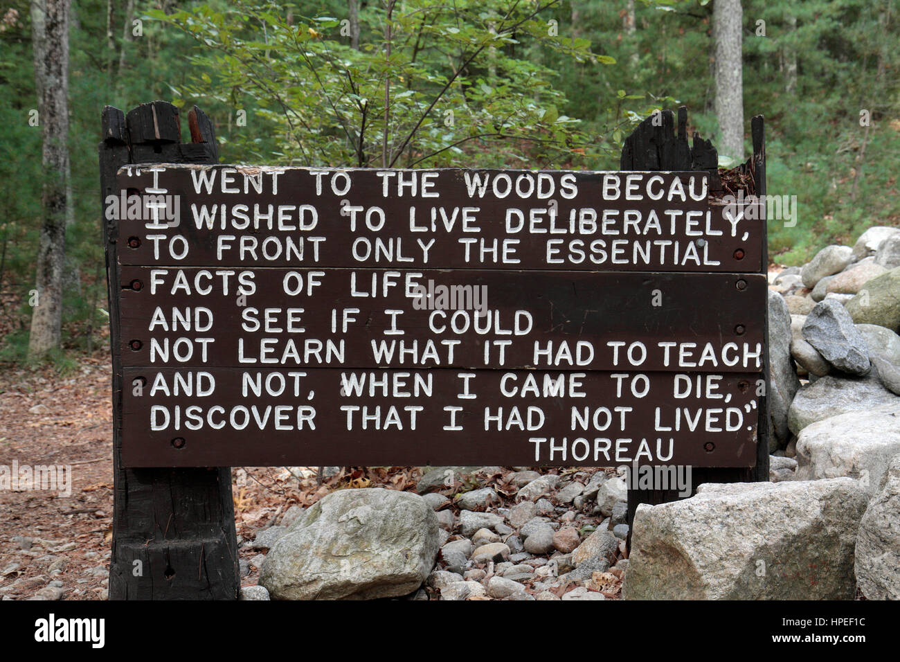 Henry David Thoreau la famosa cita de un monumento cerca del lugar de su pequeña choza en Walden Woods, Walden Pond, Concord, Massachussets, Estados Unidos Fotografía de stock - Alamy