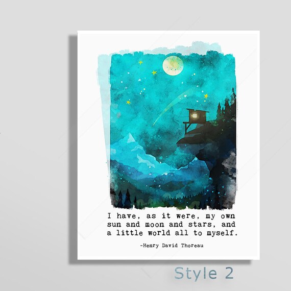 Henry David Thoreau Impresión de arte, 8.5 x 11 pulgadas arte de la pared de la acuarela, naturaleza, cabaña en el bosque, letras de mano, cita inspiradora, luna llena - Etsy España