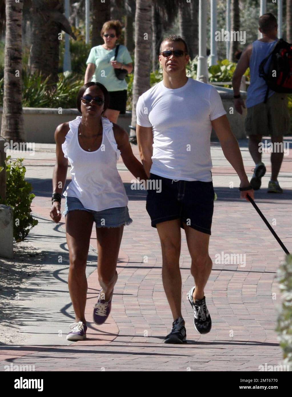 Esclusivo!! Naomi Campbell e il suo fidanzato Vladislav Doronin prendono il loro bel pooch per una passeggiata sulla spiaggia. La coppia ha camminato diversi isolati sulla sabbia e il lungomare tenendo le