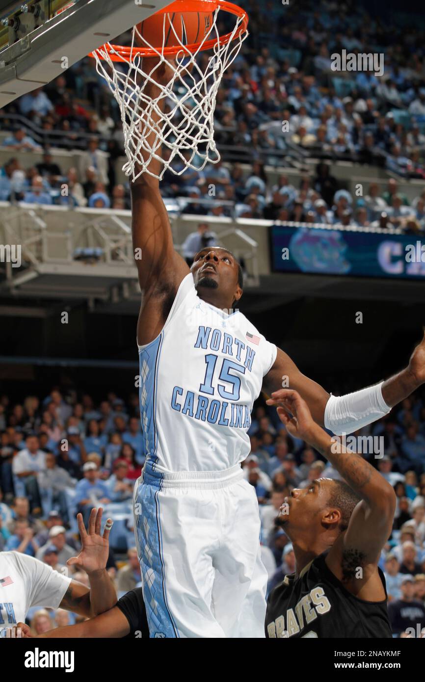 North Carolinas' P.J. Hairston (15) dunks the ball against UNC-Pembroke during the first half of an NCAA college exhibition basketball game in Chapel Hill, N.C., Friday, Oct. 28, 2011. (AP Photo/Jim R.