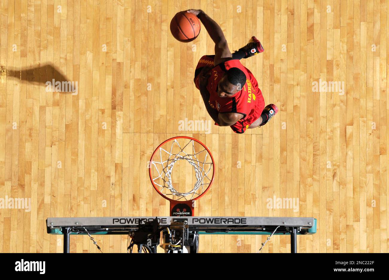 P. J. Hairston, from Hargrave Military Academy in Chatham, Va., competes in the slam dunk contest at the McDonald's High School All American basketball Jam Fest at Chicago State University in Chicago,