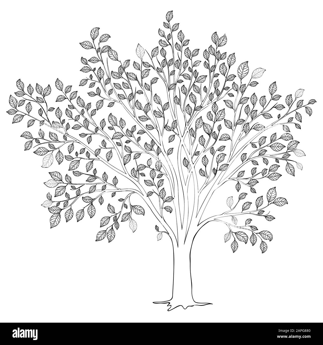 Albero con vettore silhouette foglie. Pagina del libro da colorare per adulti Immagine e Vettoriale - Alamy