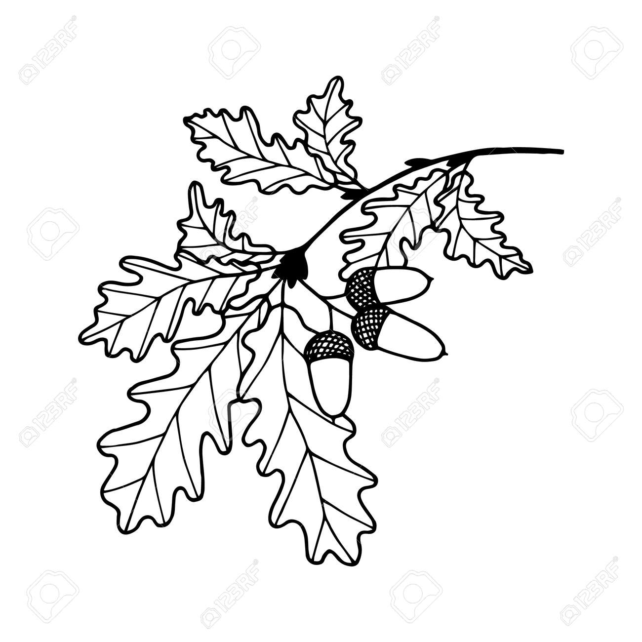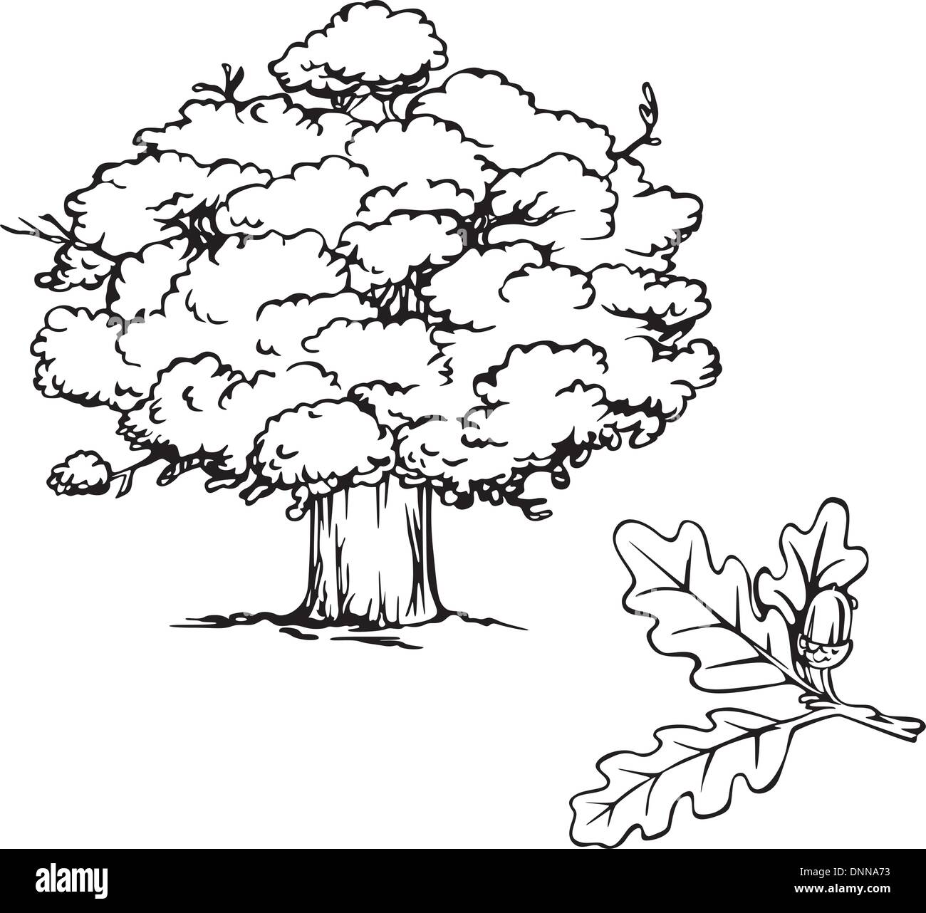 Albero di quercia e il ramo con acorn. Bianco e nero illustrazione vettoriale Immagine e Vettoriale - Alamy