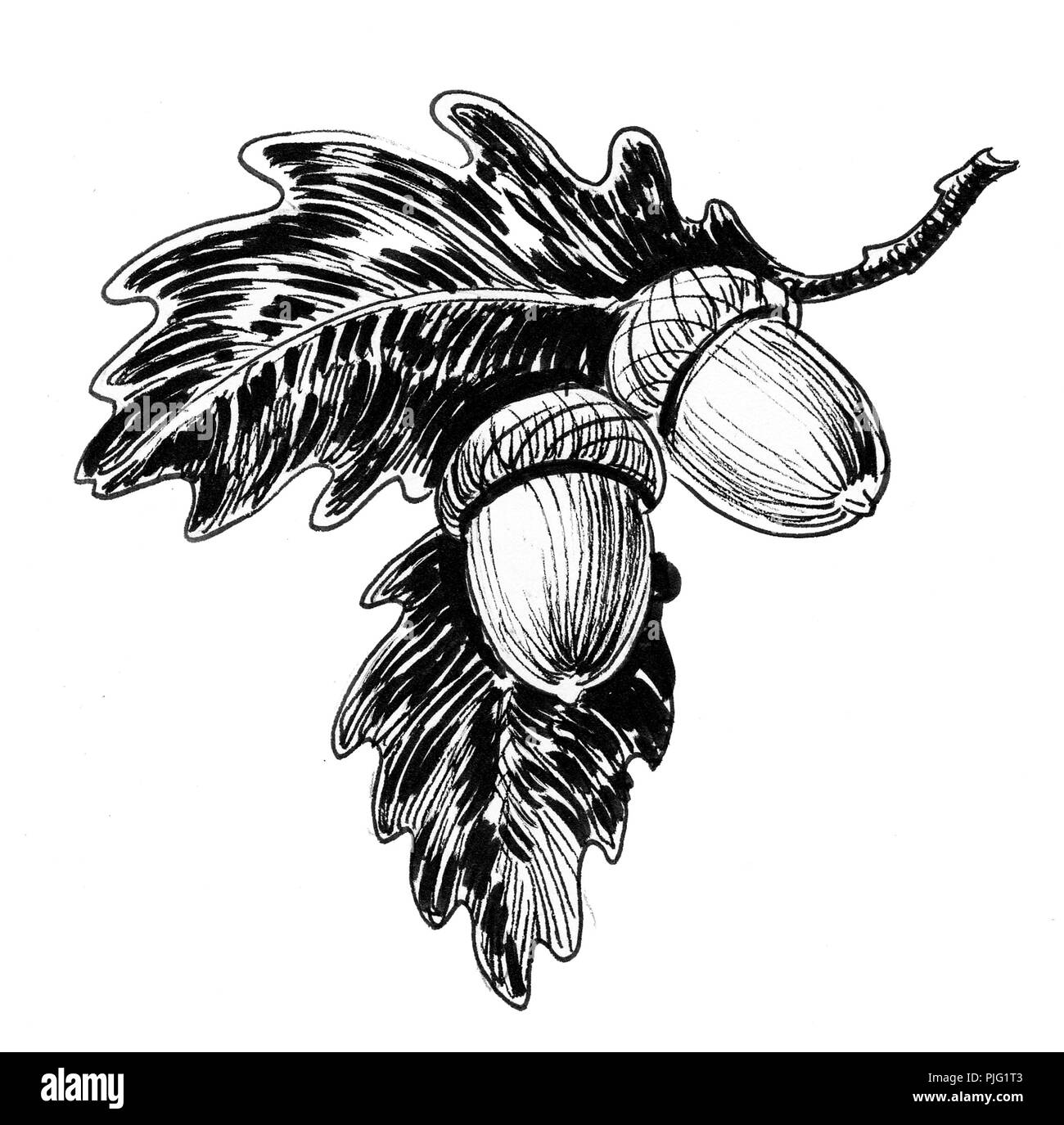Foglie di quercia ghiande Foto e Immagini Stock in Bianco e Nero - Alamy