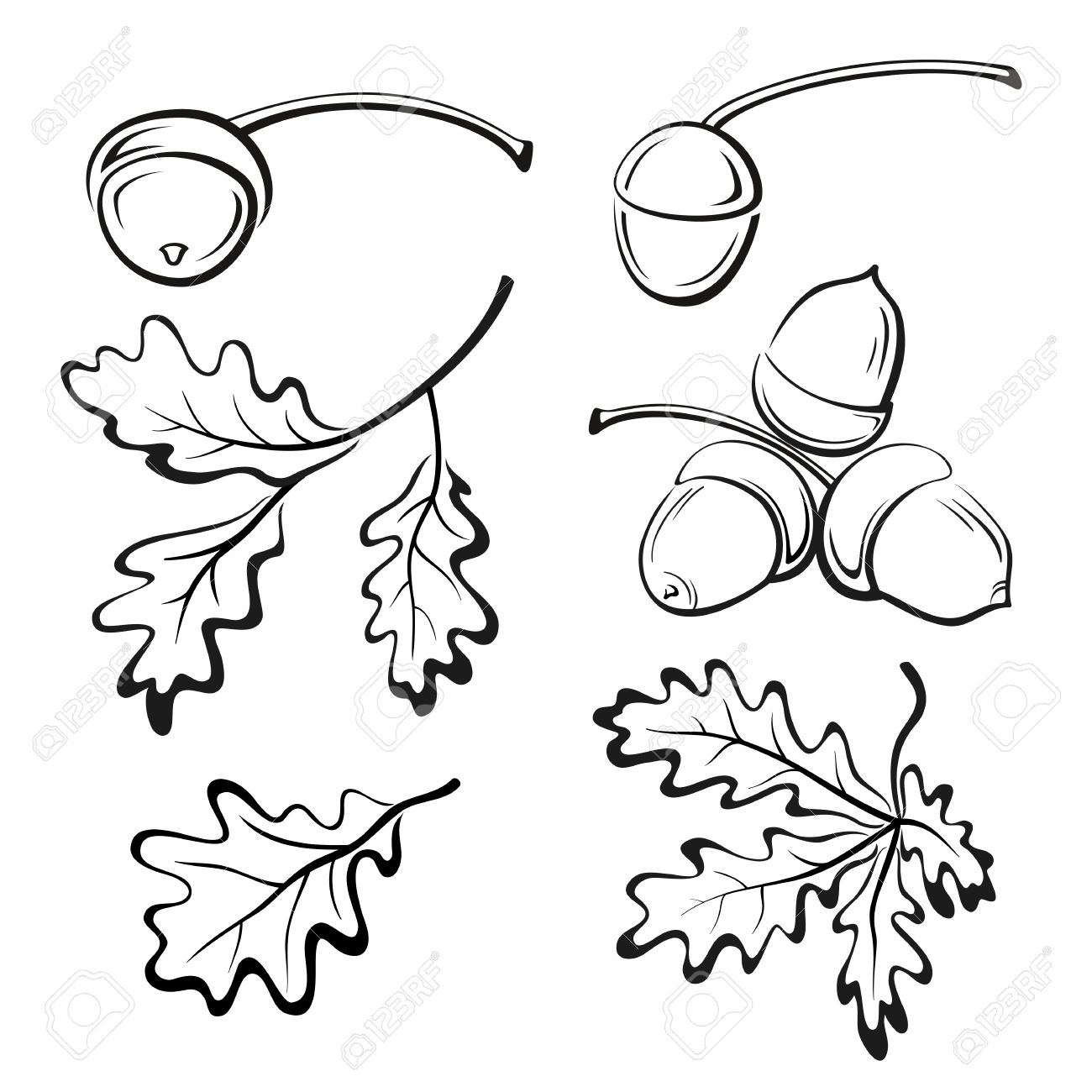 SVG, Vettoriale - Impostare Rami Di Quercia Con Foglie E Ghiande, Contorno Nero Pittogrammi Isolati Su Sfondo Bianco. Vettore. Image 47014471