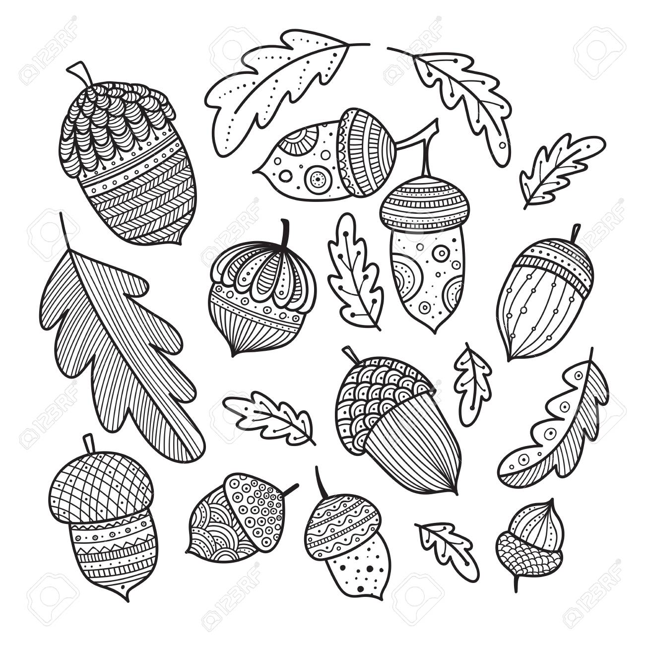 SVG, Vettoriale - Frutti E Foglie Della Quercia. Ghianda. Stock Illustrazione Vettoriale Eps10. Disegno A Mano, Contorno.. Image 169120645