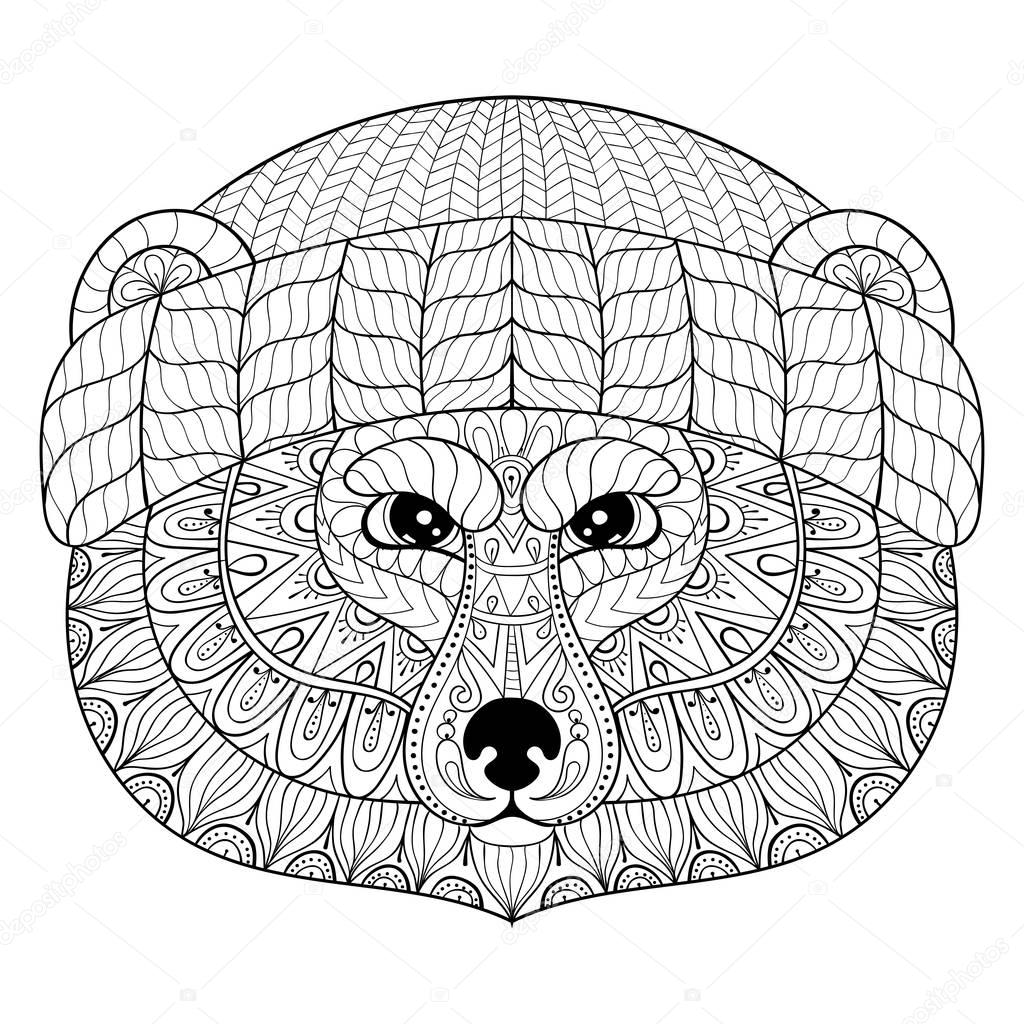 Faccia d'orso vettoriale in stile zentangle e doodle. Disegnato a mano animale selvatico volto illustrazione per adulti pagine da colorare, arte terapia. Schizzo monocromatico per logo, stampa t-shirt . - Vettoriale Stock