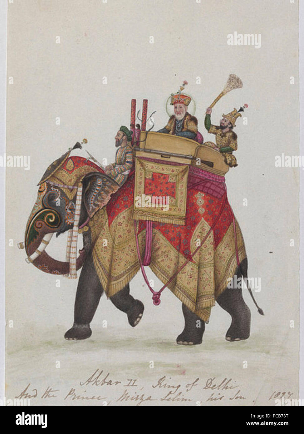 Akbar II with his son Mirza Salim Shah on an elephant Stock Photo ...